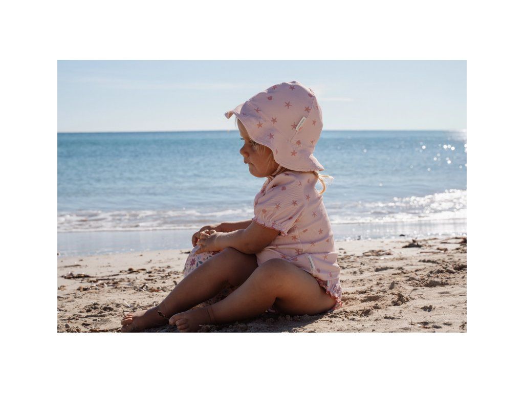 Klobúčik s krásnou potlačou chráni vaše dieťa pred slnkom pri kúpaní pri mori aj doma na záhrade. Či už vaše deti milujú skákanie vo vlnách, kúpanie v bazéne alebo si rady stavajú hrady z piesku, s touto čiapočkou si môžu bezstarostne užívať celý deň.