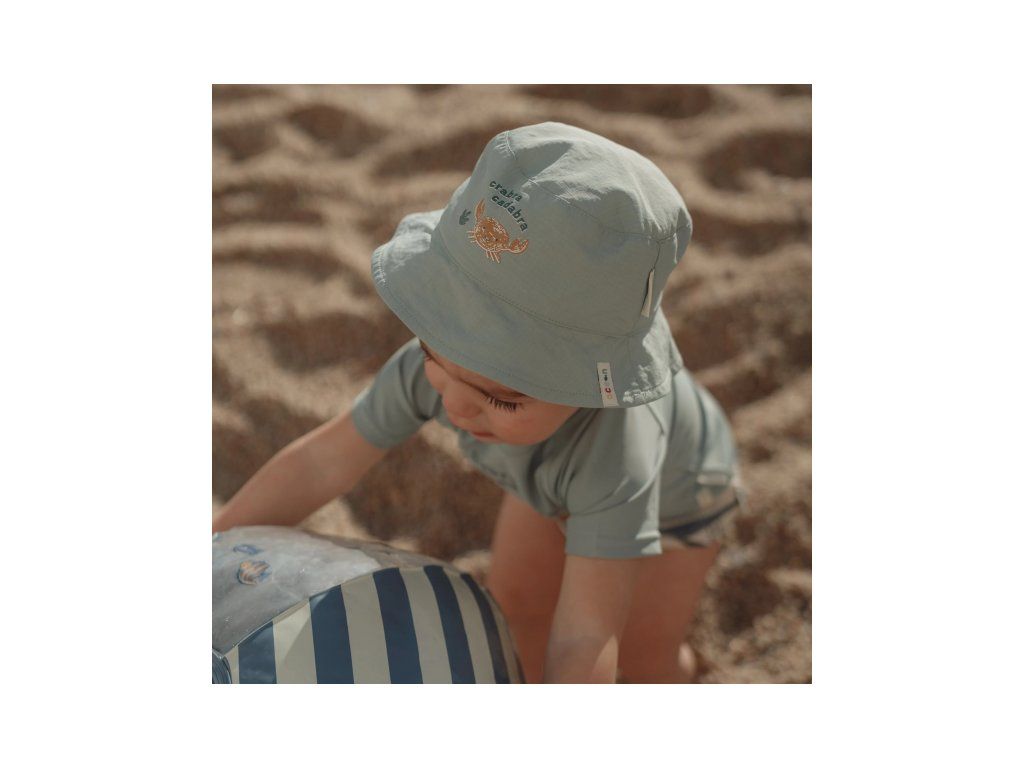 Obojstranný klobúčik s krásnou potlačou chráni vaše dieťa pred slnkom pri kúpaní pri mori aj doma na záhrade. Či už vaše deti milujú skákanie vo vlnách, kúpanie v bazéne alebo si rady stavajú hrady z piesku, s touto čiapočkou si môžu bezstarostne užívať celý deň. Obojstranné prevedenie ponúka na výber dva designy - jednofarebný s potlačou a pruhovaný.