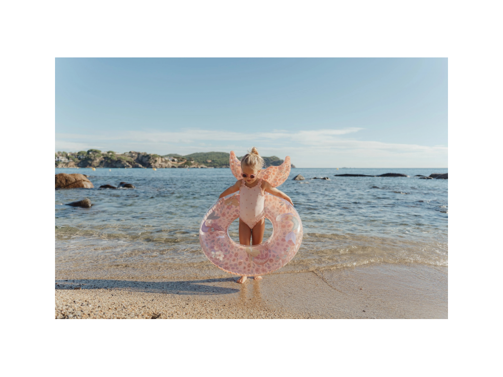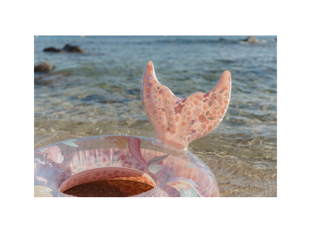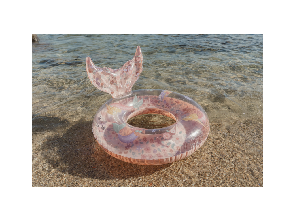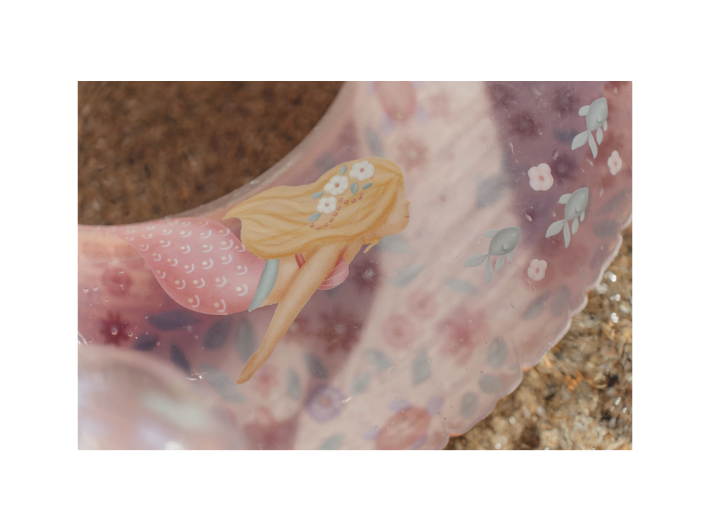 Extra veľký nafukovací kruh s krásnou potlačou motívov morskej víly a kvetov vaše deti využijú na hranie v bazéne aj na pláži pri mori.
