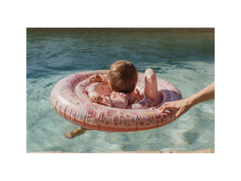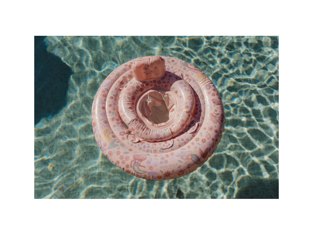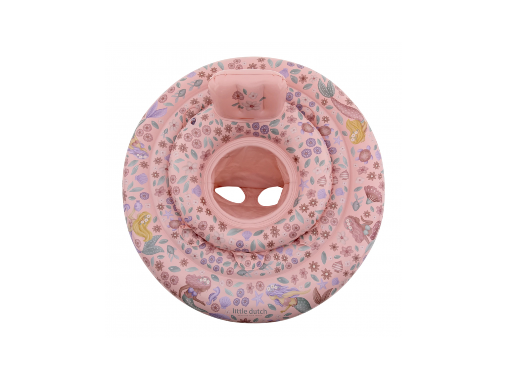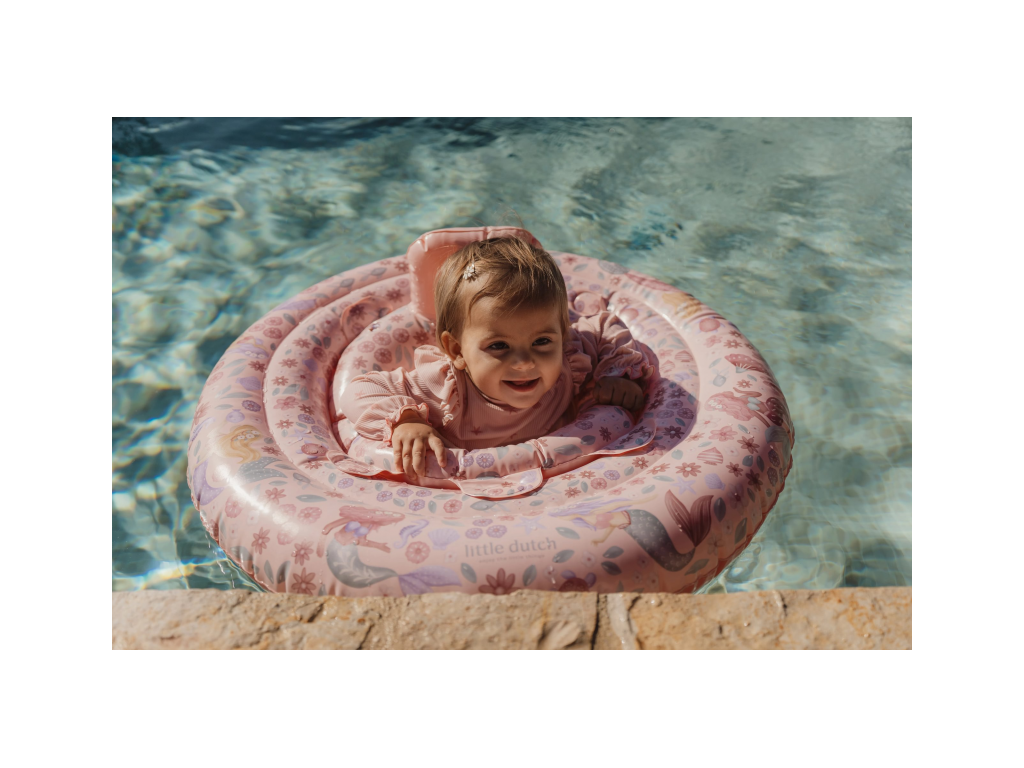 Nafukovací kruh do vody pre bábätká s krásnou potlačou motívov morskej víly a kvetov je navrhnutý tak, aby vášmu dieťaťu umožnil bezpečné prvé zoznamovanie s vodou.