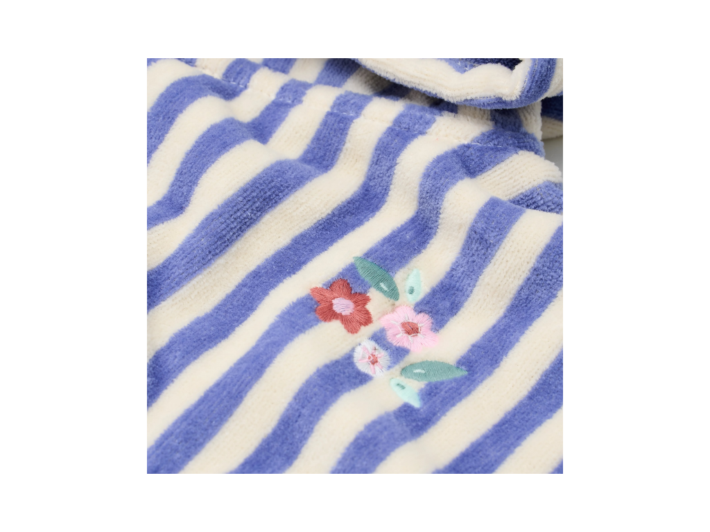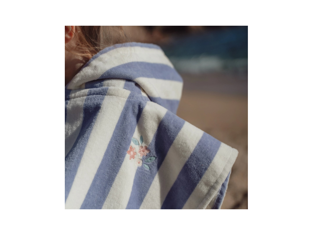 Mäkká froté osuška s kapucňou z jemnej organickej bavlny s krásnou kvetinovou výšivkou je ideálna pre jednoduché a rýchle osušenie a zabalenie dieťaťa po kúpaní v bazéne, v mori aj doma po kúpeli.