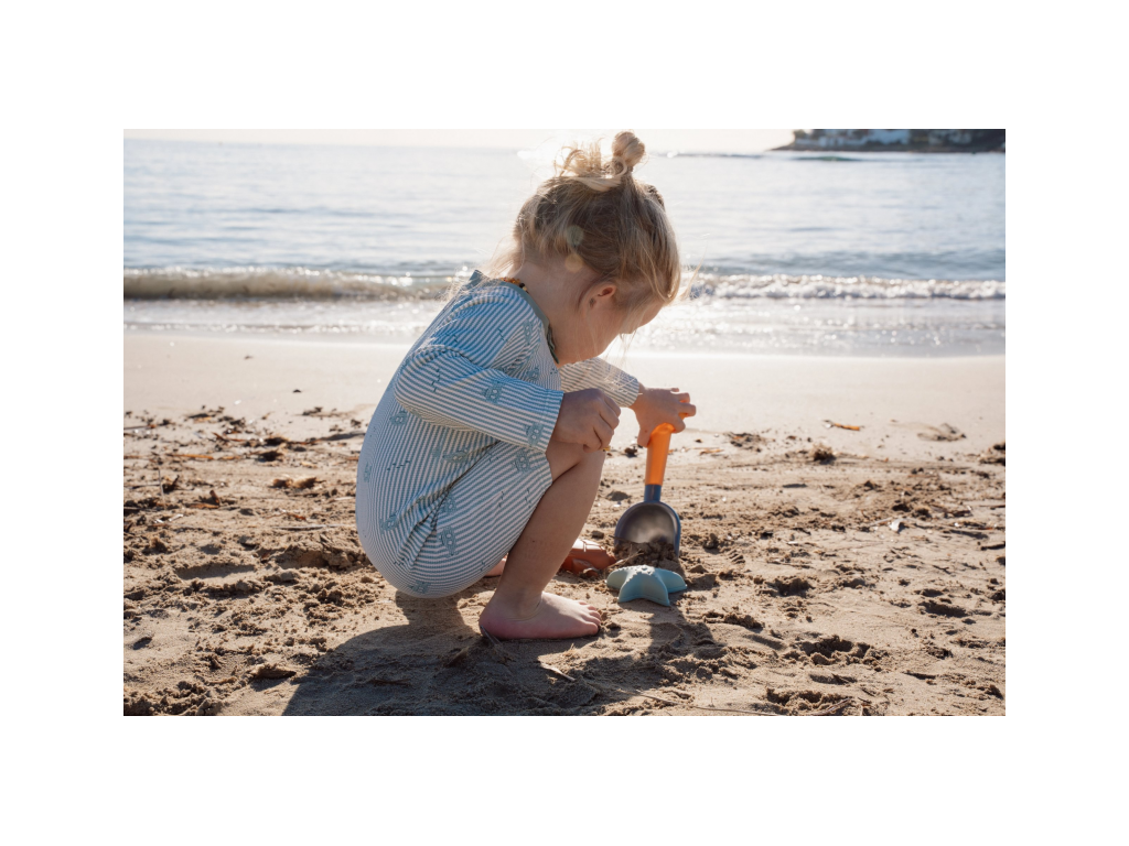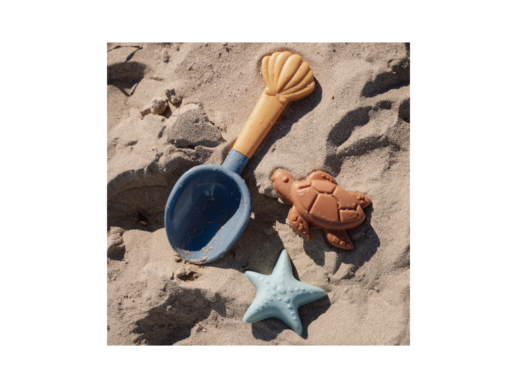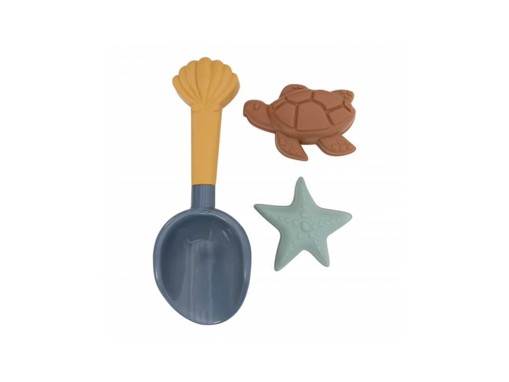 Sada na piesok s motívmi života na mori sa bude deťom hodiť doma na záhrade aj pri mori na pláži. Sadu tvorí lopatka a dve formičky v kvalitnom prevedení z pevného plastu.