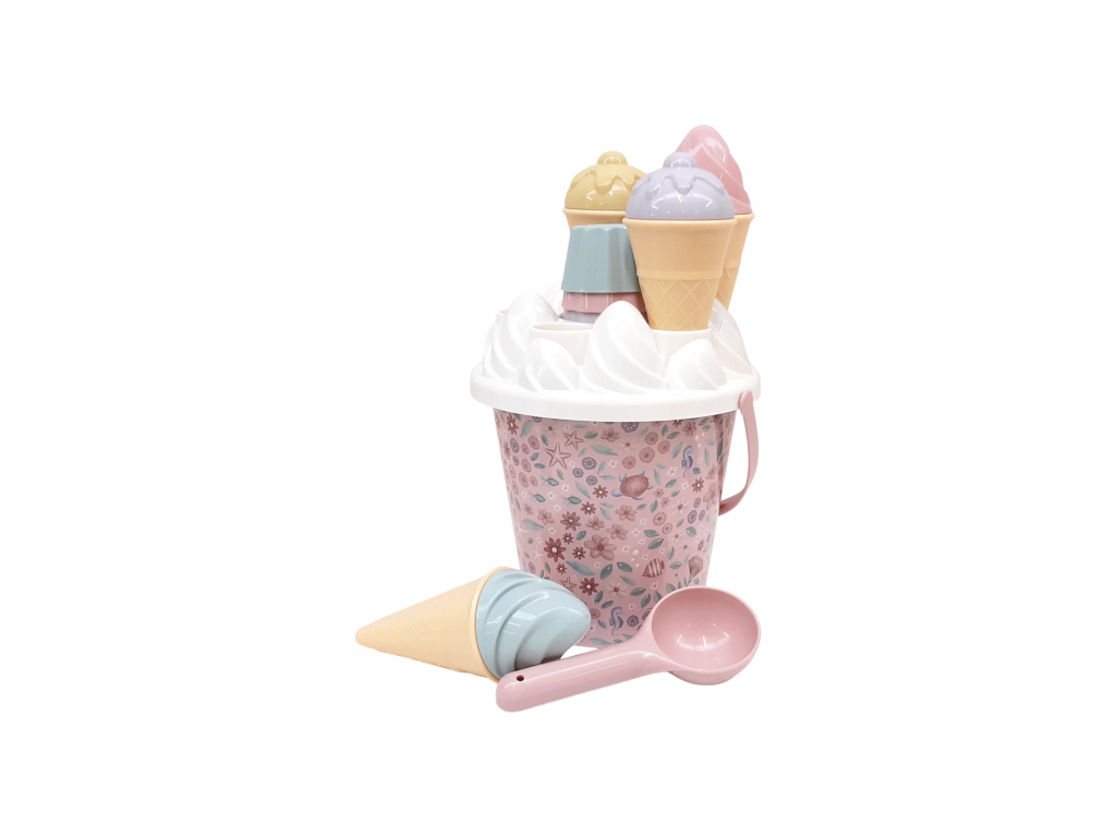 Zmrzlina patrí k letu a s touto rozkošnou sadou s krásnou kvetinovou potlačou si ju vaše deti vyrobia aj z piesku. Sadu tvorí vedierko s rukoväťou, štyri kornúty, naberačka na zmrzlinu, sedem formičiek a sitko.