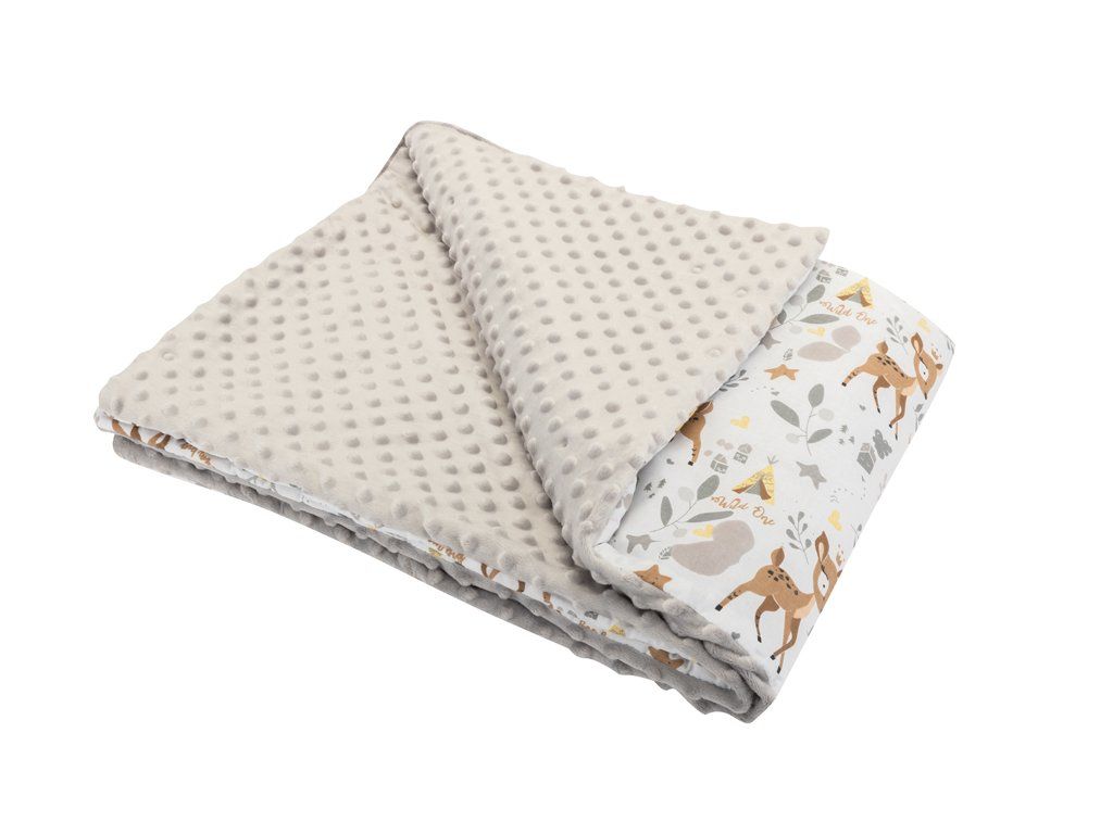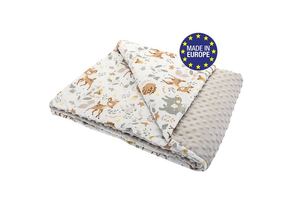 Detská luxusná obojstranná deka vyrobená z jednej strany zo 100% bavlny a z druhej z jemného, hrejivého a luxusného materiálu MINKY. Mäkučká deka je pre väčšie pohodlie s výplňou z antialergického polyesterového vlákna.