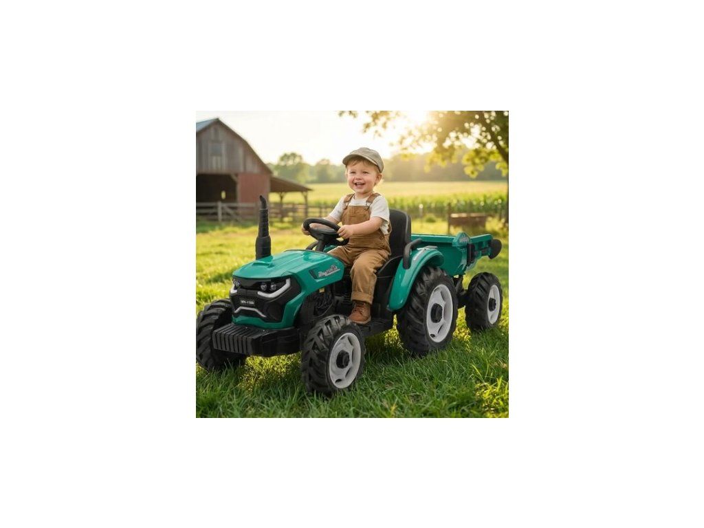 Traktor je vybavený dvoma motormi 30 W, ktoré spolu poskytujú spoľahlivý ťah a plynulý rozjazd. Batéria 12V / 10Ah zabezpečuje dlhú jazdu bez častého nabíjania. Rýchlosť prispôsobená deťom umožňuje bezpečné a pohodlné ovládanie.