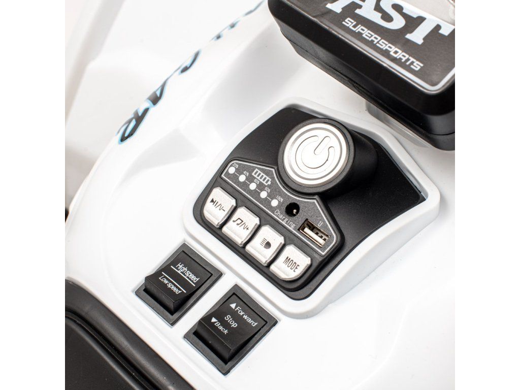 Štvorkolka Strong sa štartuje pomocou jedného tlačidla a má displej na zobrazenie stavu batérie. Pre ešte väčšiu zábavu je štvorkolka vybavená USB vstupom na prehrávanie hudby a dynamickou hudbou.
