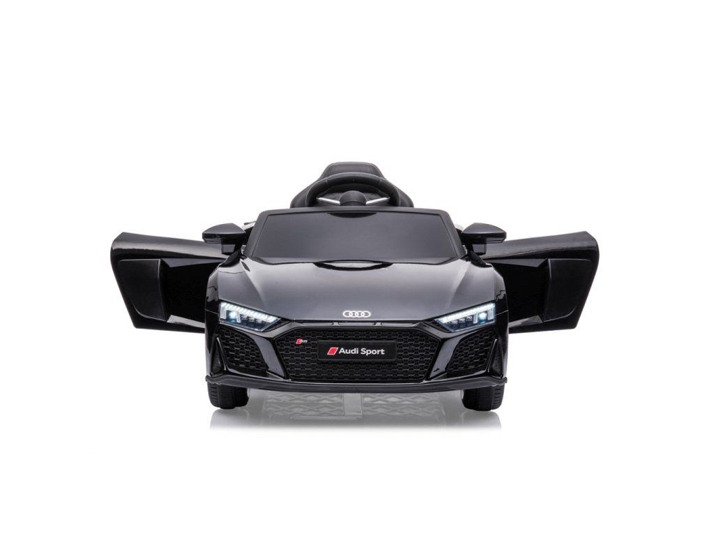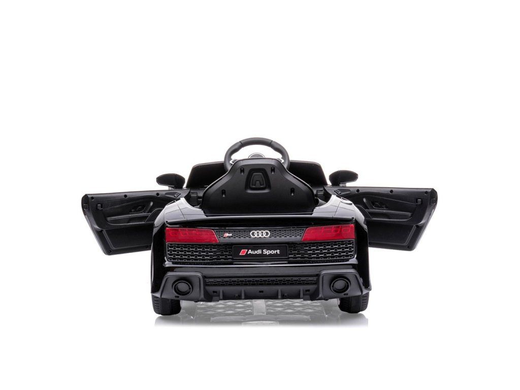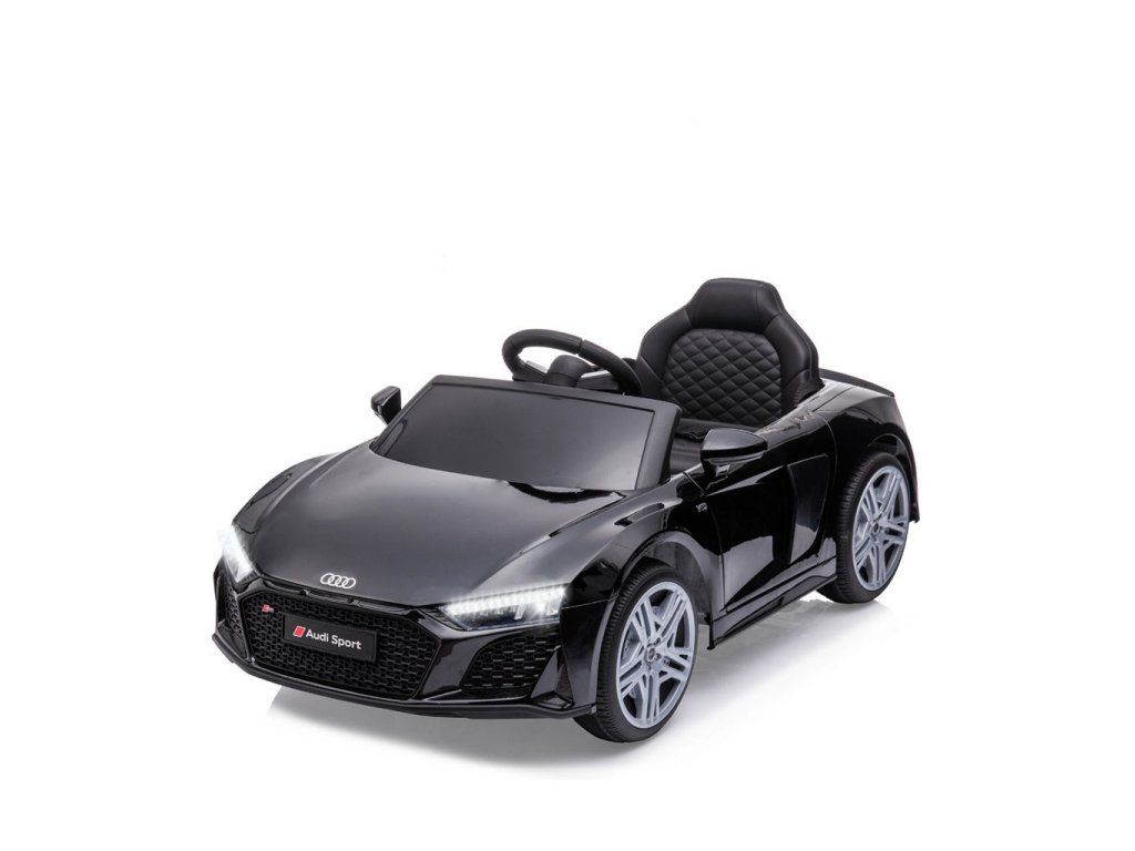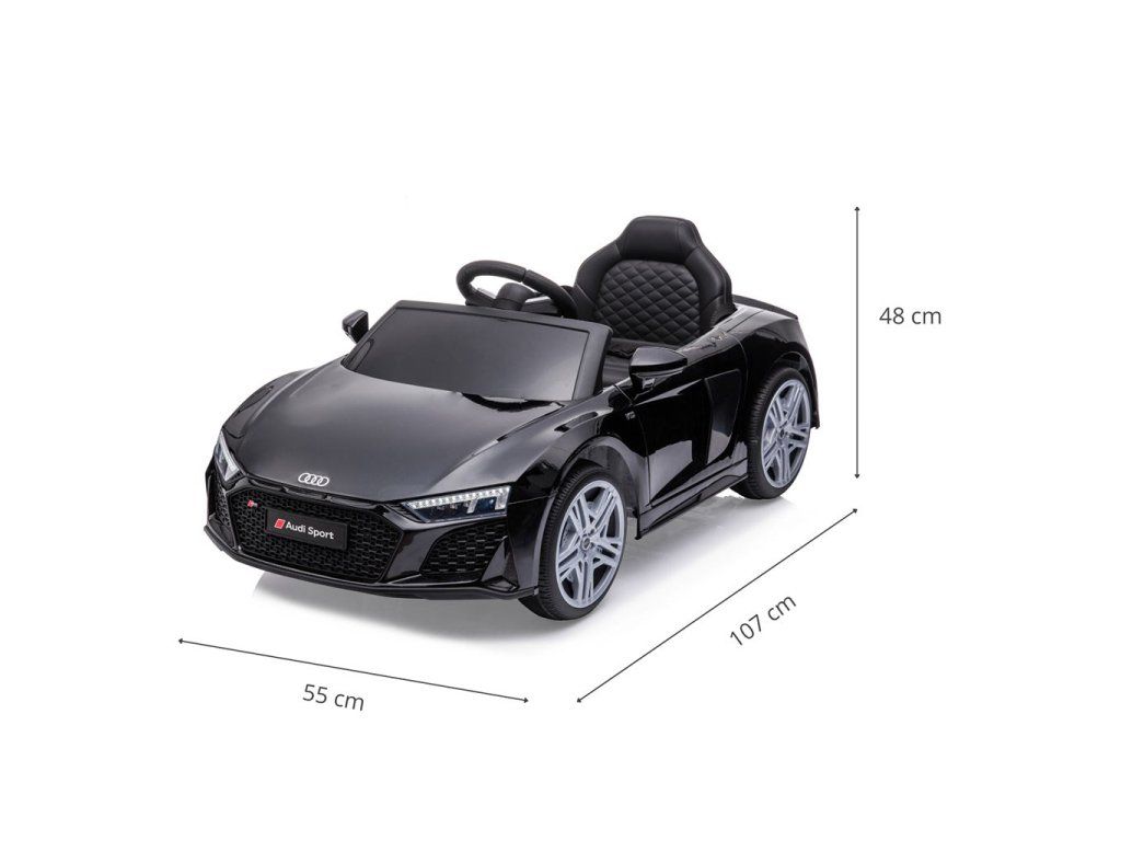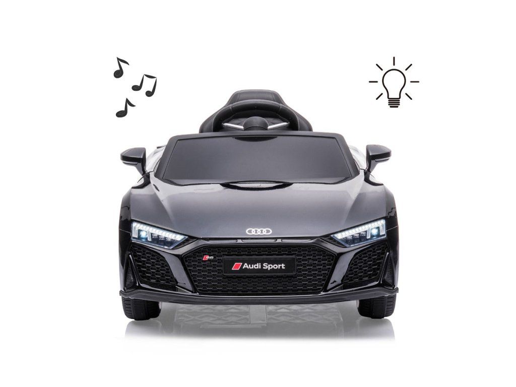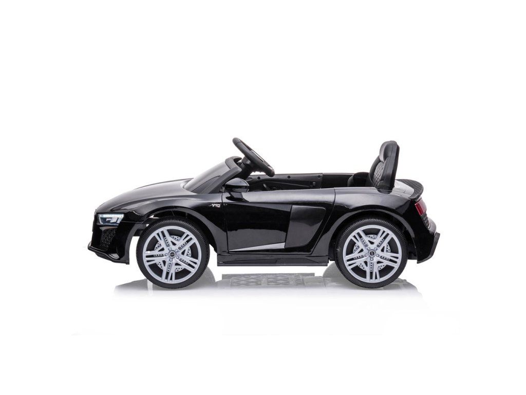 Po stlačení plynového pedálu tohto úžasného Audi R8 Spyder sa vozidlo rozbehne a zároveň sa rozsvietia predné svetlomety vďaka dvom motorom. Veľké, široké EVA kolesá s behúňom a športovými diskami zabezpečia mobilitu pri výletoch mimo domova, zatiaľ čo profilované sedadlo poskytne dieťaťu pohodlie a bezpečnosť. Oceľové nápravy kolies zabezpečujú stabilitu a odolnosť vozidla. Zábava nekončí: hudobné funkcie na kokpite, USB port, Bluetooth, prehrávanie hudby, ovládanie hlasitosti +/- , 4 piesne po stlačení tlačidla na volante vľavo, zvuk klaksónu po stlačení tlačidla na pravej strane volantu – to všetko robí hru ešte zaujímavejšou!