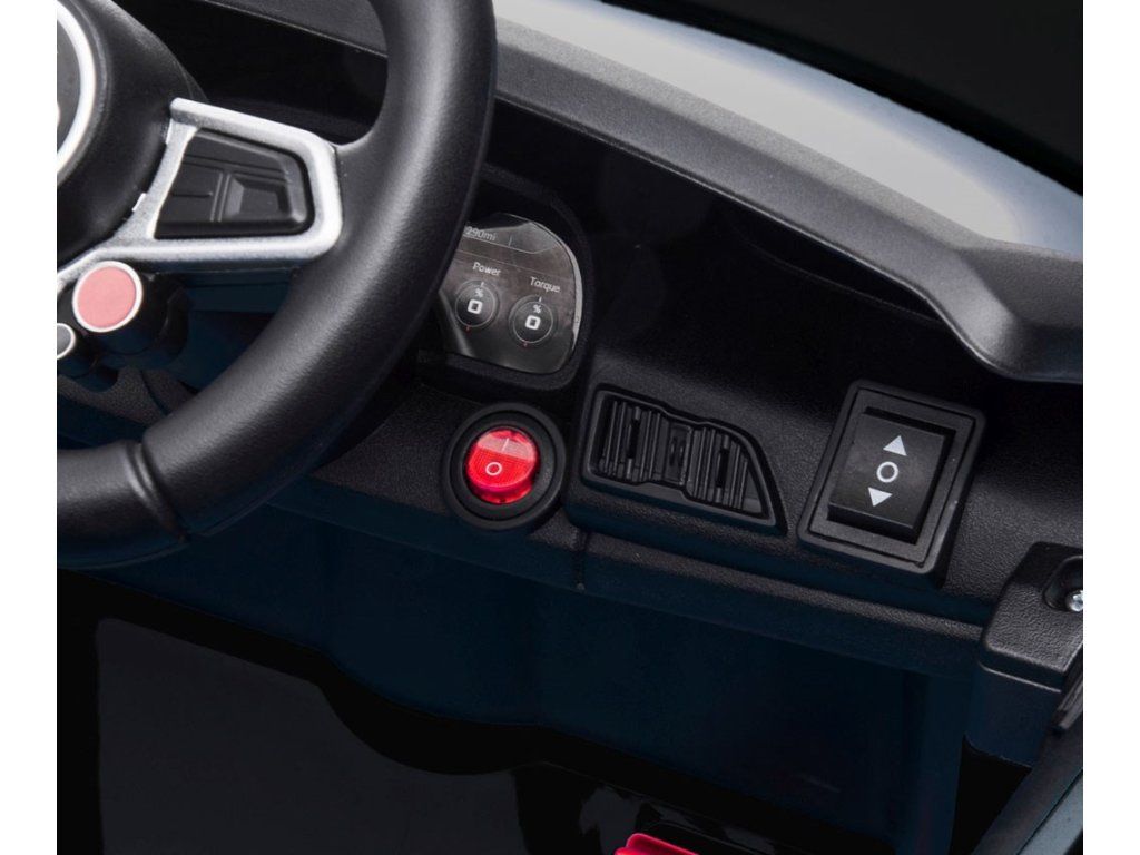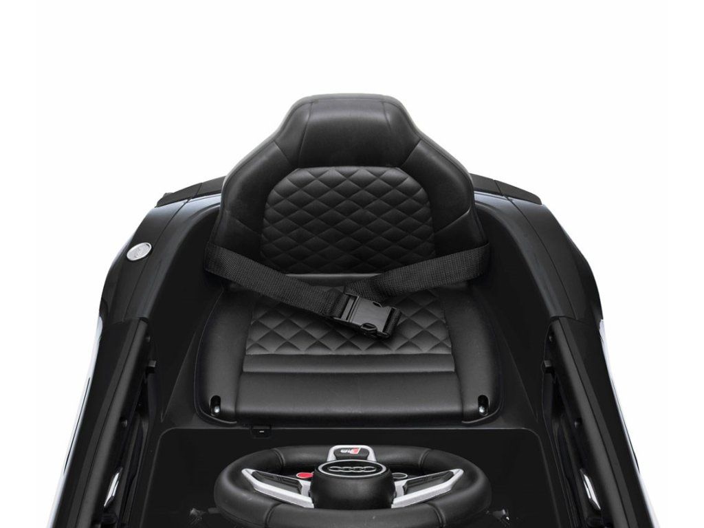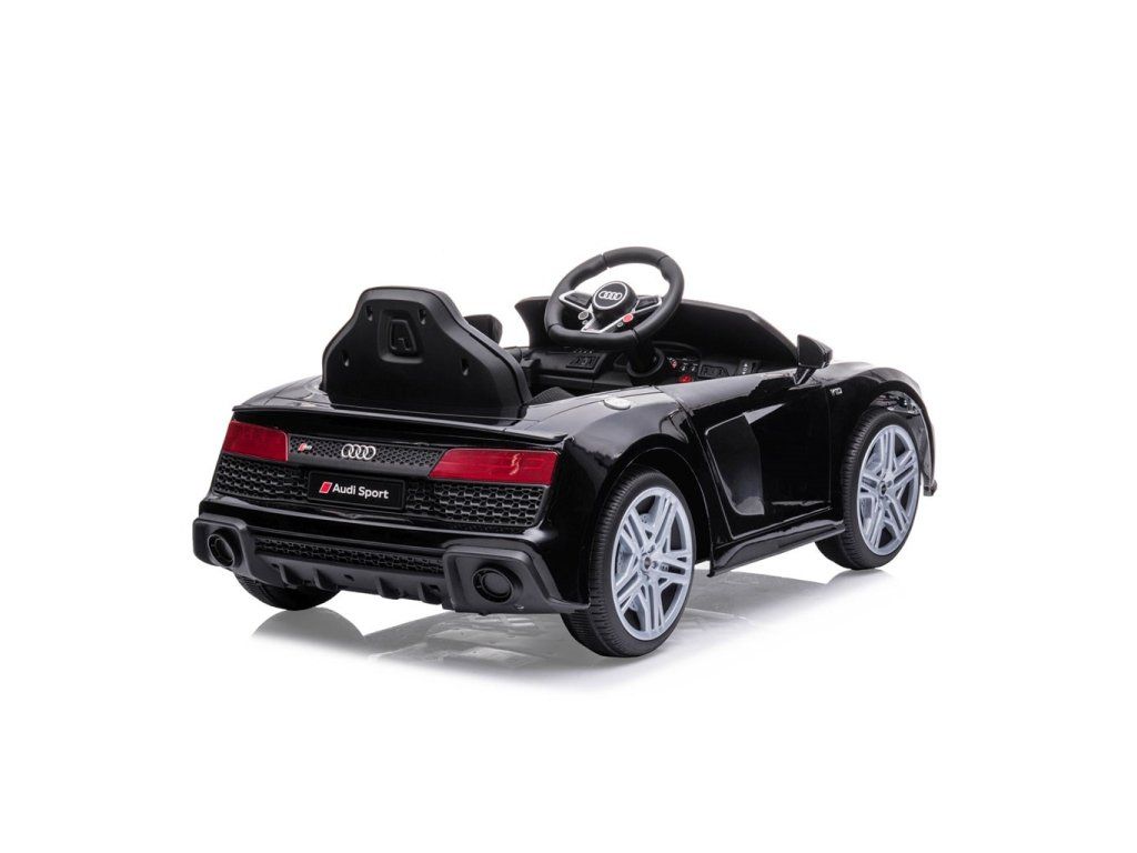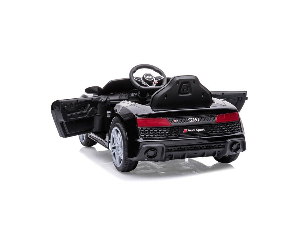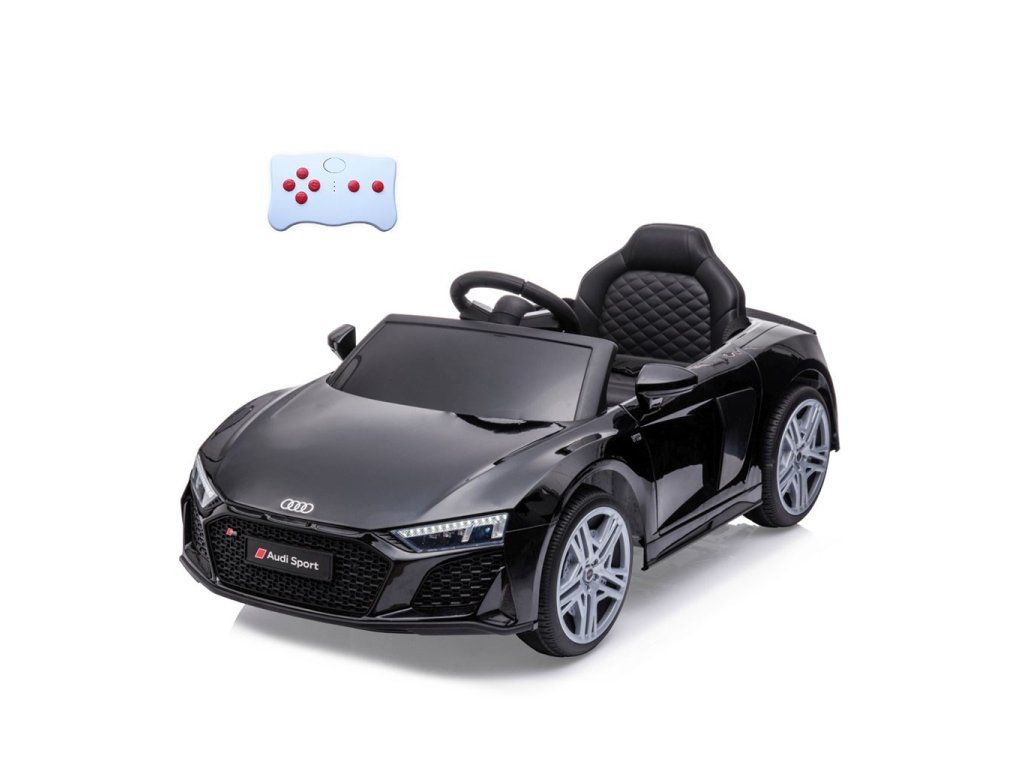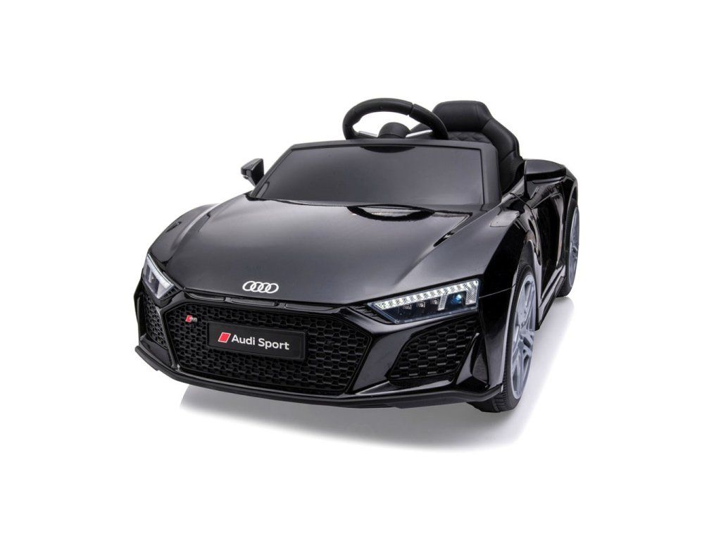 Po stlačení plynového pedálu tohto úžasného Audi R8 Spyder sa vozidlo rozbehne a zároveň sa rozsvietia predné svetlomety vďaka dvom motorom. Veľké, široké EVA kolesá s behúňom a športovými diskami zabezpečia mobilitu pri výletoch mimo domova, zatiaľ čo profilované sedadlo poskytne dieťaťu pohodlie a bezpečnosť. Oceľové nápravy kolies zabezpečujú stabilitu a odolnosť vozidla. Zábava nekončí: hudobné funkcie na kokpite, USB port, Bluetooth, prehrávanie hudby, ovládanie hlasitosti +/- , 4 piesne po stlačení tlačidla na volante vľavo, zvuk klaksónu po stlačení tlačidla na pravej strane volantu – to všetko robí hru ešte zaujímavejšou!