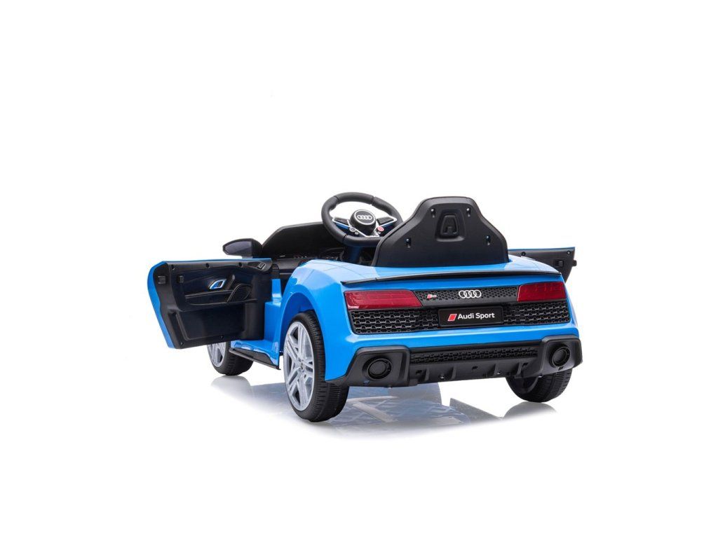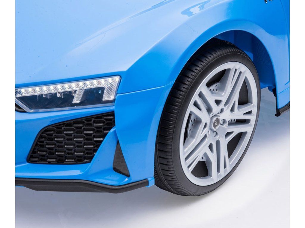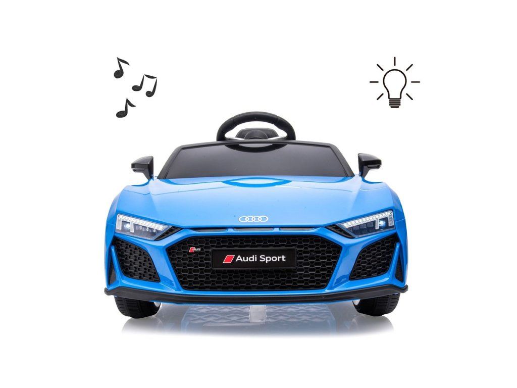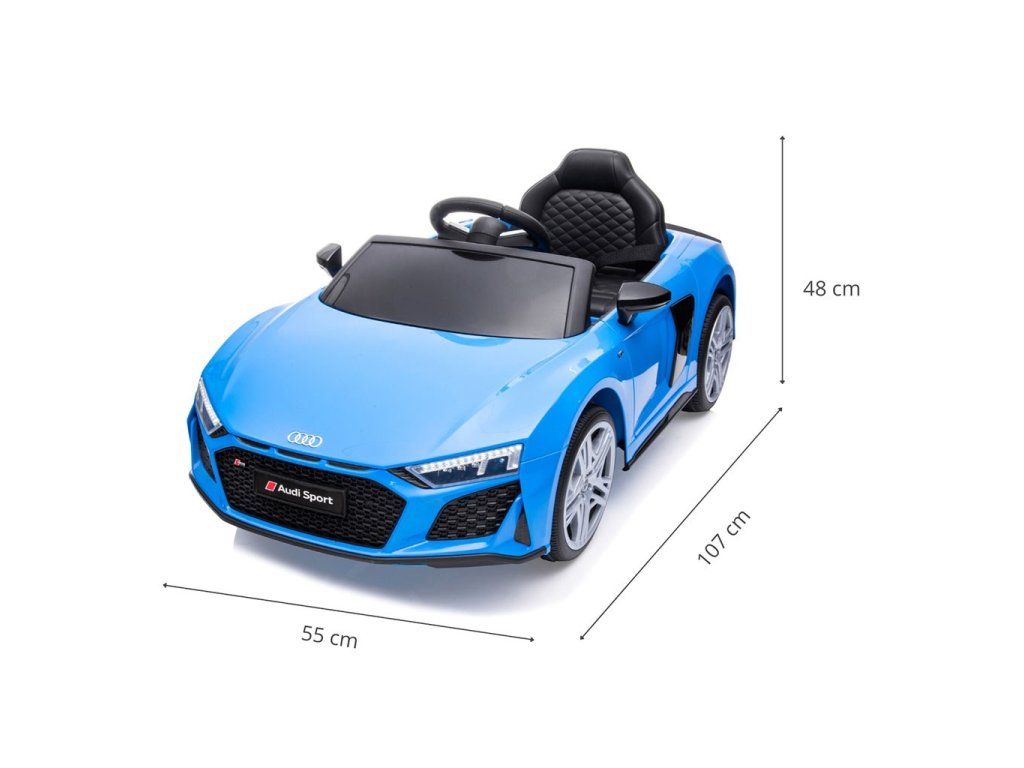 Po stlačení plynového pedálu tohto úžasného Audi R8 Spyder sa vozidlo rozbehne a zároveň sa rozsvietia predné svetlomety vďaka dvom motorom. Veľké, široké EVA kolesá s behúňom a športovými diskami zabezpečia mobilitu pri výletoch mimo domova, zatiaľ čo profilované sedadlo poskytne dieťaťu pohodlie a bezpečnosť. Oceľové nápravy kolies zabezpečujú stabilitu a odolnosť vozidla. Zábava nekončí: hudobné funkcie na kokpite, USB port, Bluetooth, prehrávanie hudby, ovládanie hlasitosti +/- , 4 piesne po stlačení tlačidla na volante vľavo, zvuk klaksónu po stlačení tlačidla na pravej strane volantu – to všetko robí hru ešte zaujímavejšou!