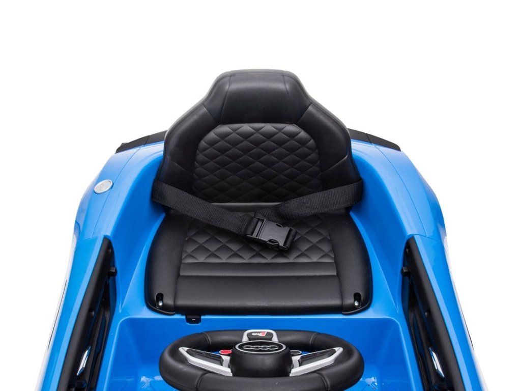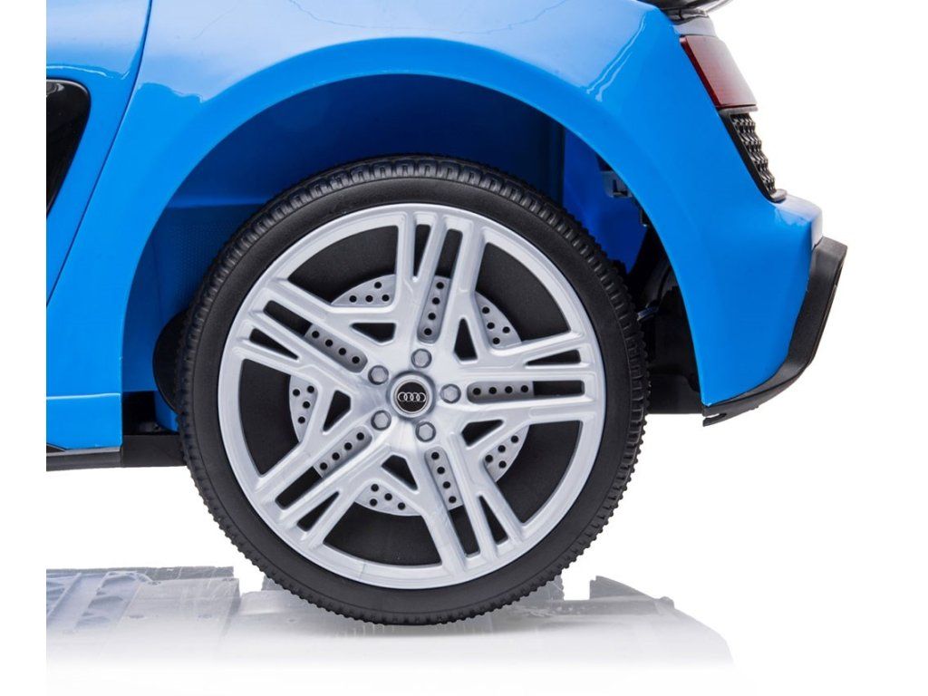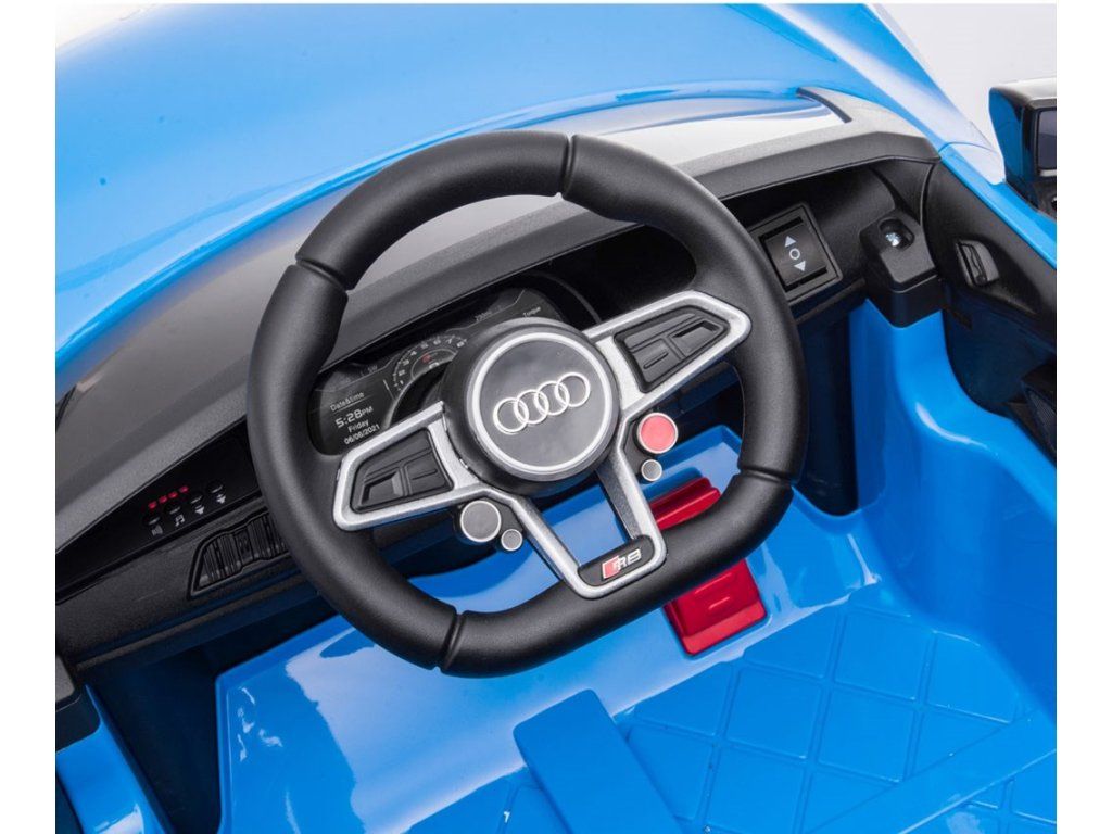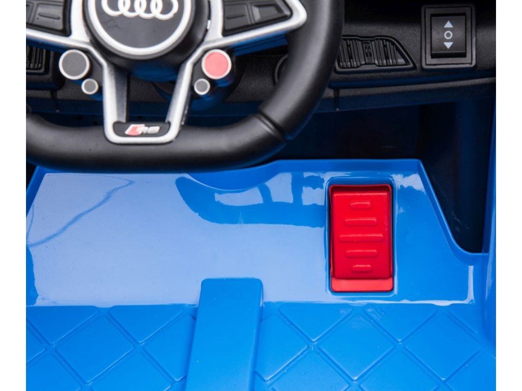 Po stlačení plynového pedálu tohto úžasného Audi R8 Spyder sa vozidlo rozbehne a zároveň sa rozsvietia predné svetlomety vďaka dvom motorom. Veľké, široké EVA kolesá s behúňom a športovými diskami zabezpečia mobilitu pri výletoch mimo domova, zatiaľ čo profilované sedadlo poskytne dieťaťu pohodlie a bezpečnosť. Oceľové nápravy kolies zabezpečujú stabilitu a odolnosť vozidla. Zábava nekončí: hudobné funkcie na kokpite, USB port, Bluetooth, prehrávanie hudby, ovládanie hlasitosti +/- , 4 piesne po stlačení tlačidla na volante vľavo, zvuk klaksónu po stlačení tlačidla na pravej strane volantu – to všetko robí hru ešte zaujímavejšou!