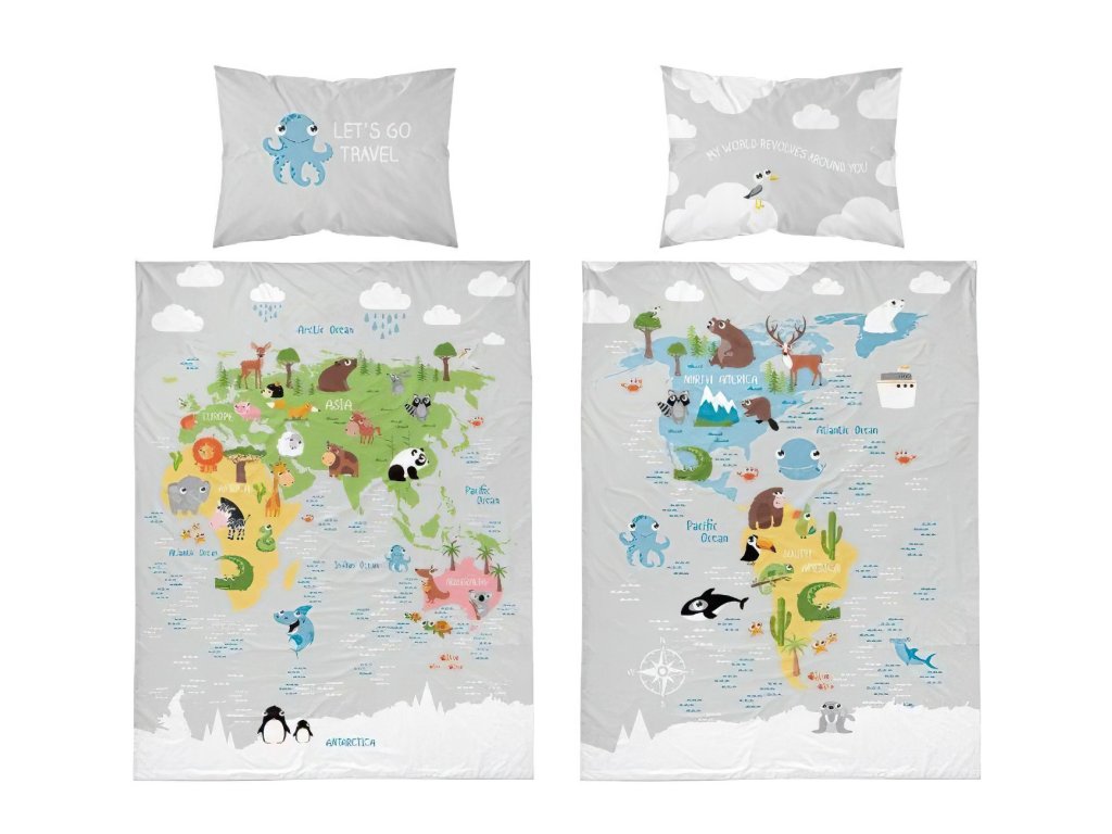 Nádherné detské obliečky s motívom sveta. Každý večer sa vaše dieťa môže ponoriť do fascinujúceho sveta, plného exotických miest, zvierat a kultúr. Tieto pohodlné obliečky sú navrhnuté tak, aby inšpirovali vaše dieťa k snom o dobrodružstvách, cestovaní a poznávaní nových vecí. Zaľahnete s úsmevom na tvári, vedúc, že vaše dieťa má svet plný možností priamo na svojej posteli. Dopraje vašim deťom bezstarostný spánok plný nádherných snov. Obliečky sú vyrobené z kvalitnej bavlny, príjemné na dotyk, v sýtych farbách so zapínaním na zips.