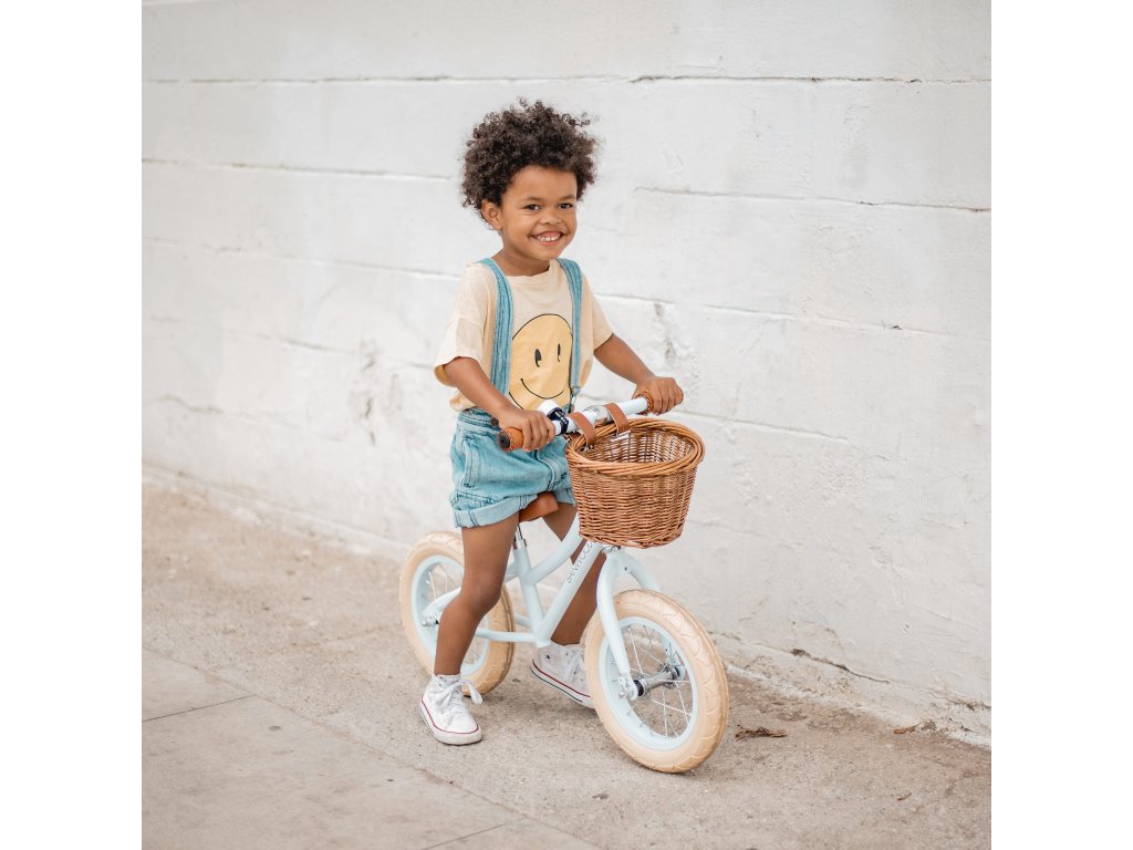 Víziou Banwood je pozitívne ovplyvňovať aktívny životný štýl detí od útleho veku. Banwood ponúka štýlové produkty v nadčasovom minimalistickom dizajne a vysokej kvalite, ktoré pomáhajú rozvíjať osobnosť detí a vytvárať spomienky na detstvo plné radosti. Milujeme spôsob, akým sa deti hrajú! Pre koho je Banwood odrážadlo? Banwood odrážadlo je určené pre deti od 3 rokov. Vďaka nastaviteľnej výške sedadla a riadidiel rastie odrážadlo s dieťaťom až do momentu, kedy je pripravené presedlať na bicykel. Nezastaviteľní jazdci plní sebavedomia! Banwood odrážadlo je ideálny spôsob ako vaše dieťa prirodzene naučiť balansu potrebnému pri bicyklovaní. Dáva mu voľnosť pohybu pri samostatnej jazde, rozvíja jeho hrubú motoriku a priestorovú orientáciu. Vďaka tomu, že dieťa využíva na pohyb a balansovanie vlastné telo, získava tak sebavedomie nad kontrolou riadenia, pričom má stále istotu vďaka nohám na zemi. Prechod na klasický bicykel tak bude ľahký a bez potreby použitia pomocných koliesok. Nadčasový škandinávsky dizajn v klasickom „vintage“ štýle, bez kompromisov na kvalite a bezpečnosti. Každodennú radosť z pohodlnej jazdy si deti užijú vďaka prvotriednym detailom, ako sú pohodlné ergonomické sedadlo, odľahčený oceľový rám, 12-palcové kolesá a rukoväte z vegánskej kože. Samozrejme nemôže chýbať ikonický prútený košík, aby si váš malý prieskumník mal kam odložiť všetko potrebné na výlete za ďalším dobrodružstvom. Doporučený vek od 3 rokov. Zvonček a prútený košík v balení. Pohodlné ergonomické výškovo nastaviteľné sedadlo s poťahom z vegánskej kože. Štýlové rukoväte z vegánskej kože. Odľahčený oceľový rám v dvoch dizajnoch - s rovnou alebo so zakrivenou hornou rámovou tyčou. Nastaviteľná výška sedadla odrážadla so zakriveným rámom: od 37 do 44 cm. Nastaviteľná výška sedadla odrážadla s rovným rámom: od 44 do 50 cm. Nastaviteľná výška riadidiel od 50 do 59 cm. 12-palcové kolesá. Maximálna nosnosť 25 kg. Váha 4,5 kg.Dodatočné parametre