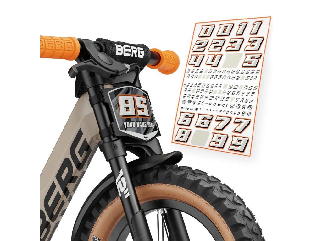 Na dodávaný štítok s číslom si môžete nalepiť svoje meno a závodné číslo. To ľahko urobíte pomocou dodaného archu samolepiek. Tento číselný štítok potom ľahko pripevníte na riadidlá a môžete začať pretekať!
