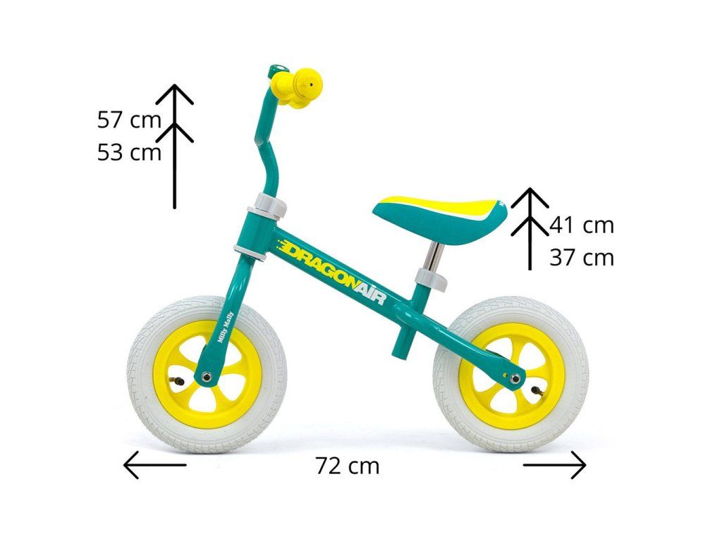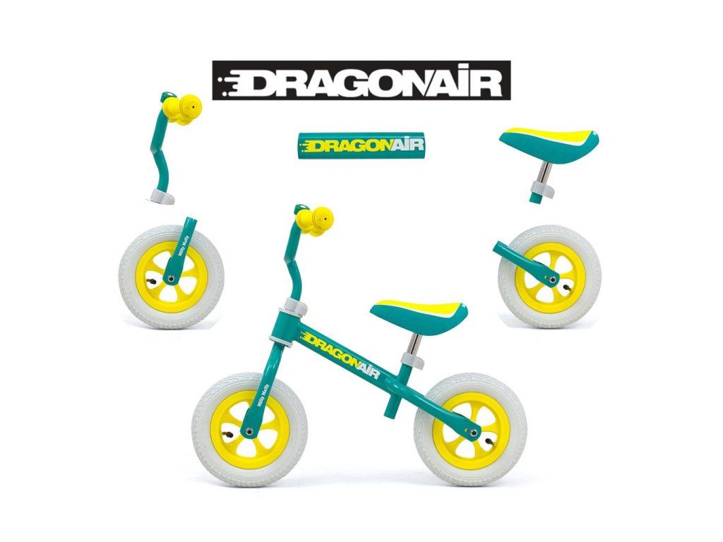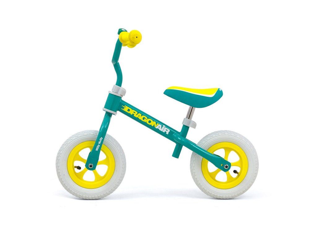 Detské odrážadlo-bicykel Milly Mally DRAGON AIR je ideálne, keď sa dieťa učí udržať rovnováhu. Vďaka širokým nafukovacím gumovým pneumatikám z odolného materiálu zabezpečí stabilitu a bezpečnosť na rôznych povrchoch. Nastaviteľné riadidlá a sedlo zabezpečia, že odrážadlo-bicykel "porastie" s malým cyklistom. Nekĺzavé rukoväte a vhodne profilované sedlo poskytne pohodlie pri objavovaní nových "cyklistických trás".Charakteristika: