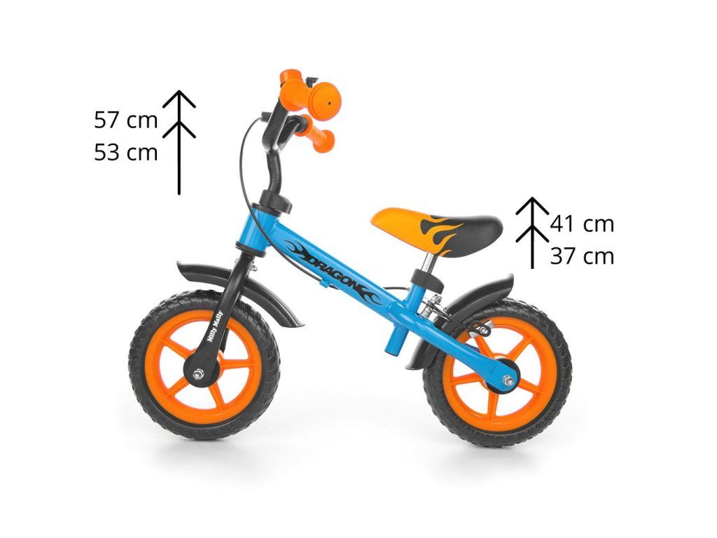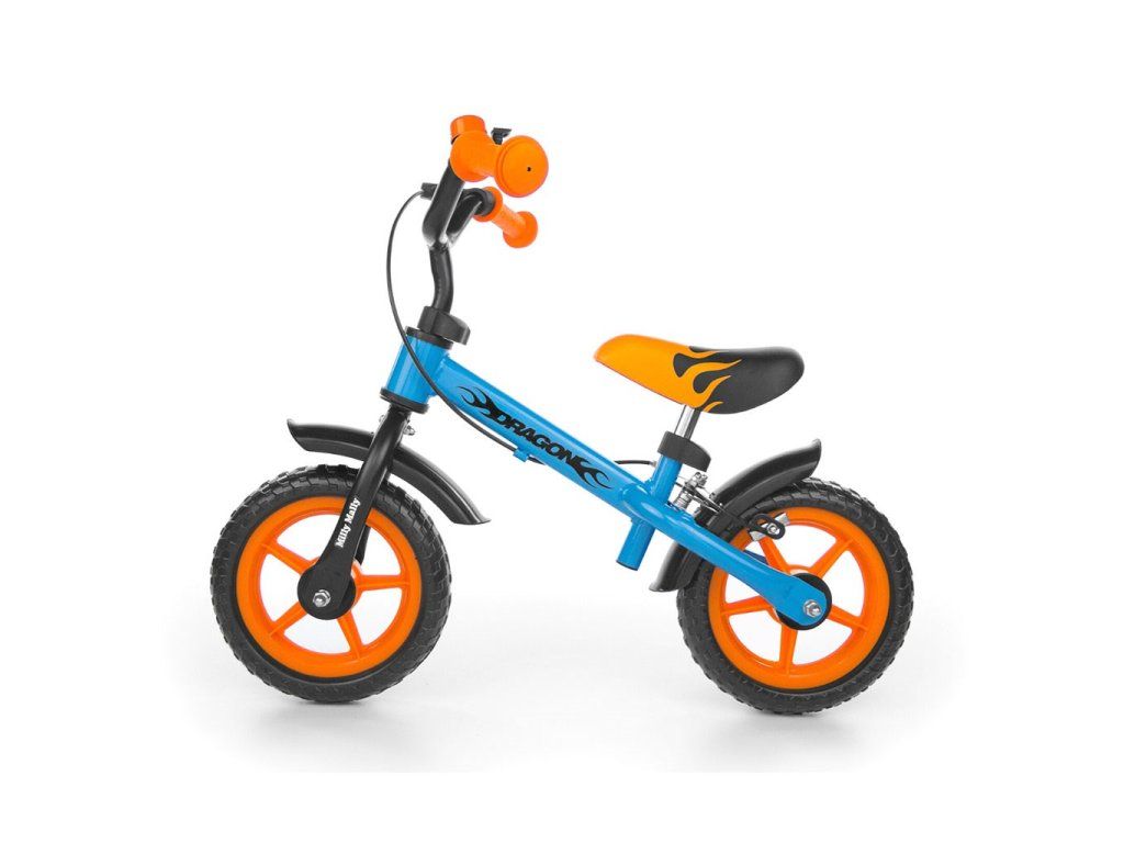 Detské odrážadlo kolo Milly Mally Dragon s brzdou orange-blue - 20561