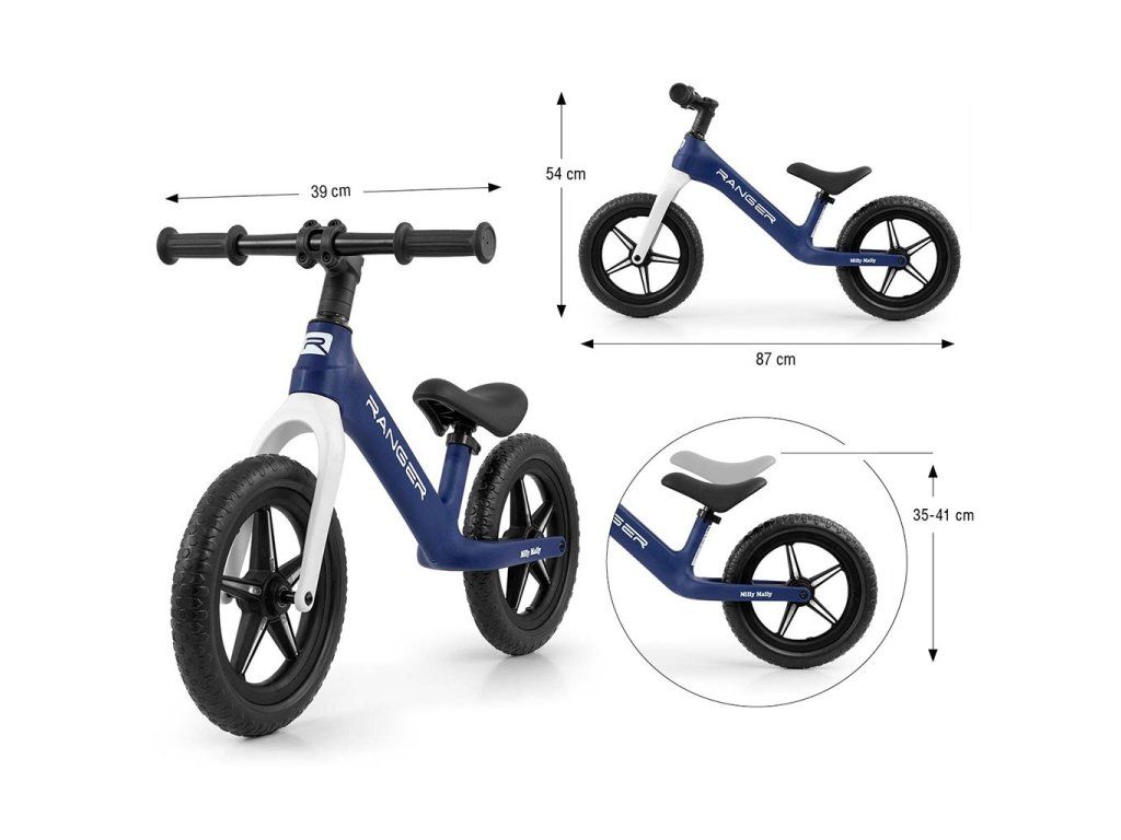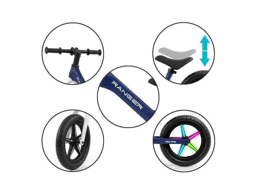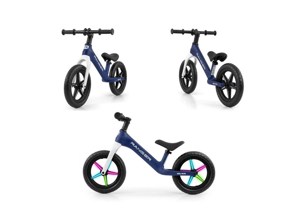 Detský balančný bicykel Milly Mally Ranger Flash Navy - 56532