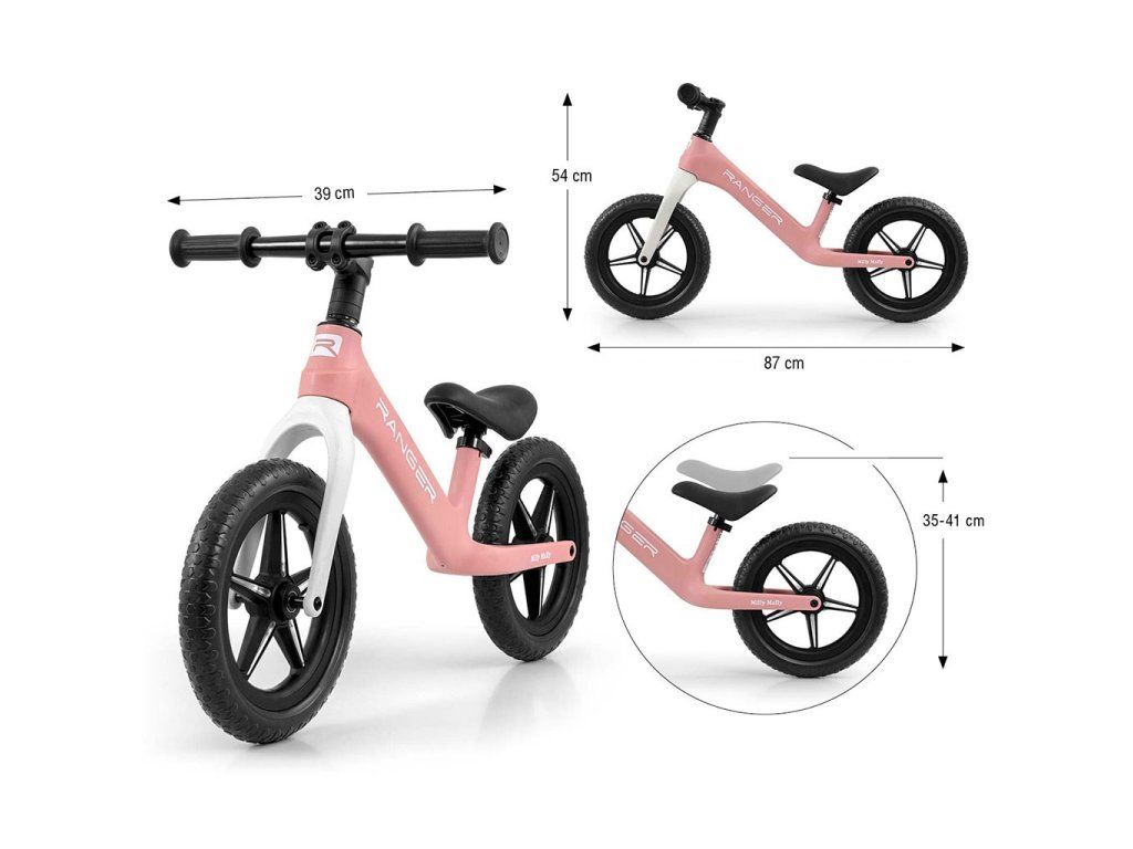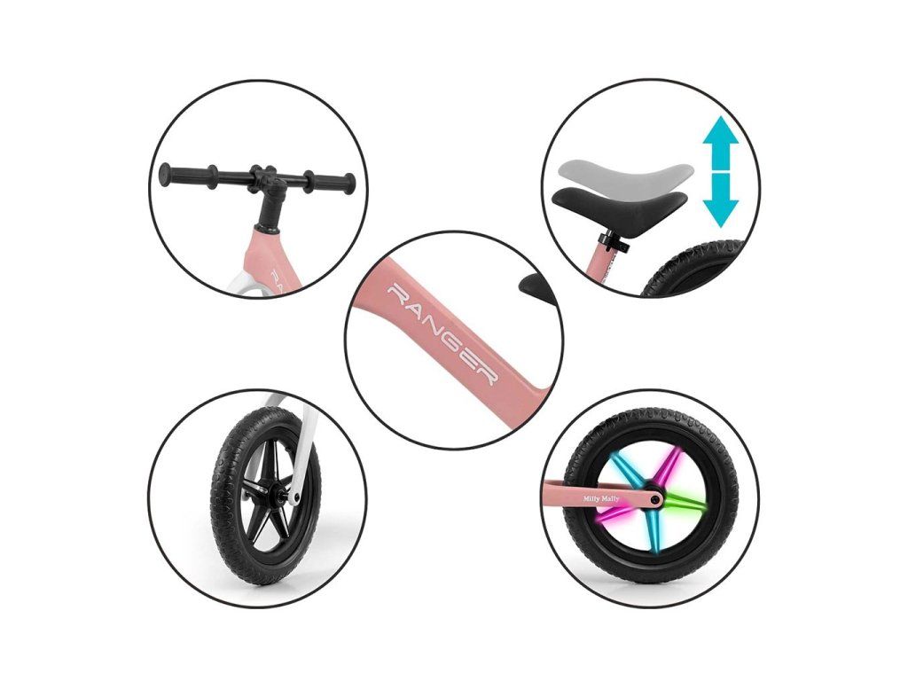 Detský balančný bicykel Milly Mally Ranger Flash Pink - 56534
