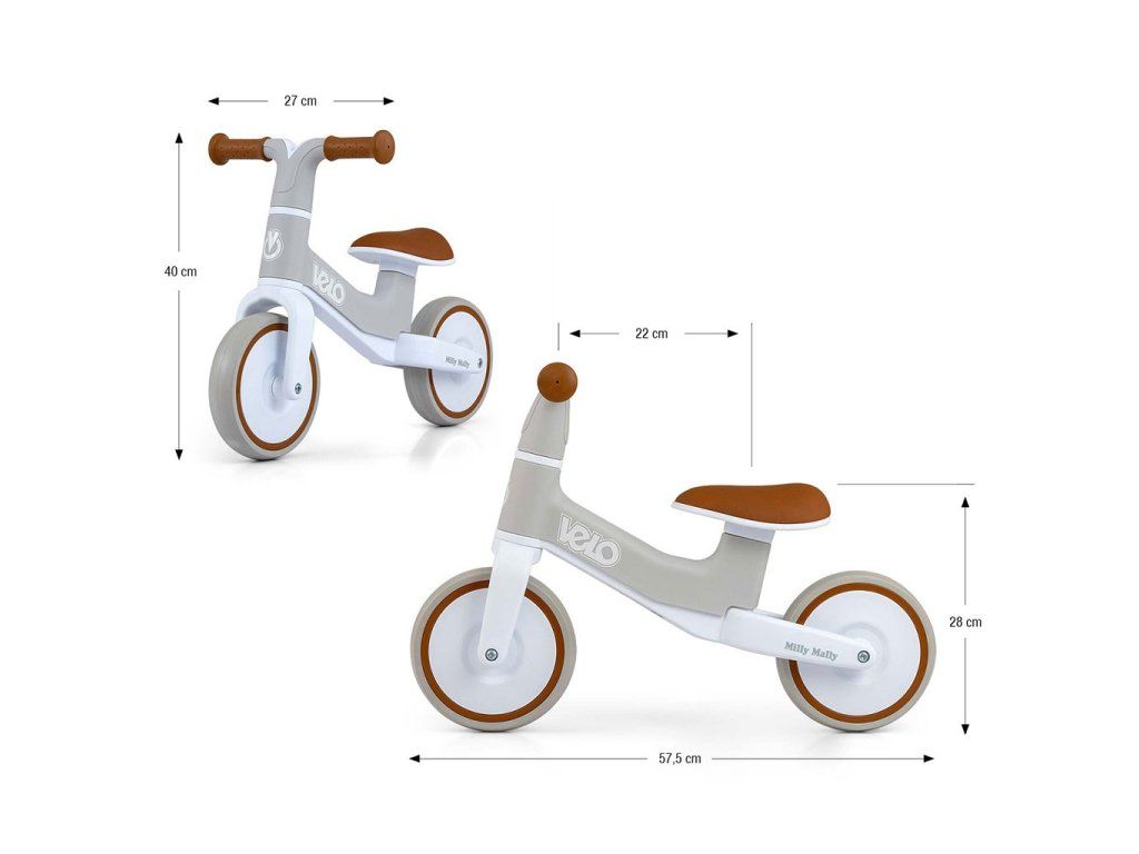 Detský balančný bicykel Milly Mally Velo Brown - 55819