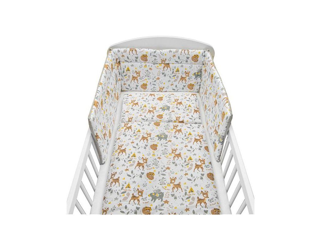 Detská súprava do postieľky New Baby. Súprava je vyrobená zo 100% bavlny. Obsahuje obliečky na vankúšik cca 40x60 cm + obliečky na perinku cca 120x90 cm a mantinel cca 31x175 cm. Materiál 100% bavlna.