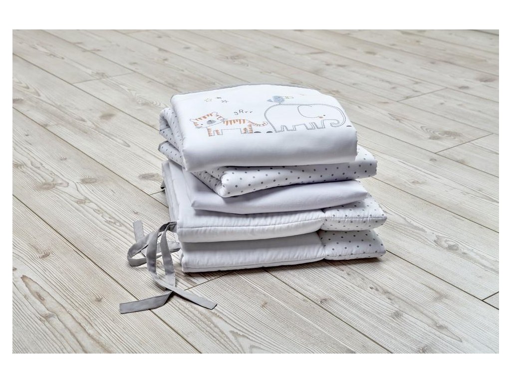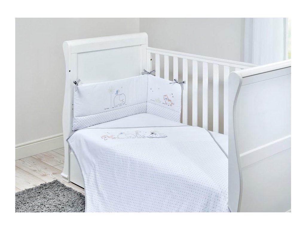 Součástí sady do postýlky je přikrývka 100x120cm, mantinel 35x155cm a prostěradlo na postýlku 70x140cm.