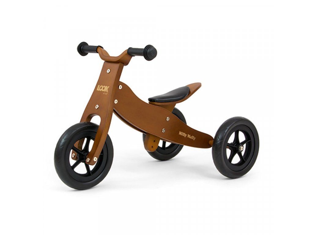 Detské multifunkčné drevené odrážadlo Milly Mally Look 2v1 je ideálnym riešením pre deti, ktoré sa práve začínajú učí jazdiť na bicykli a pritom ešte nie sú schopné udržať rovnováhu na dvoch kolesách. Hlavnou výhodou odrážadla Look je, že trojkolku ľahko a rýchlo prerobíte na odrážadlo na dvoch kolesách. Je vyrobené z pevného dreva a ozdobené krásnymi veselými farbami a obrázkami. Penové kolesá zaistia pohodlie počas jazdy a neunavia vášho malého pretekára. Dostatočná vzdialenosť kolies od seba poskytuje extrémnu stabilitu, bezpečnosť a pohodlie doma i vonku. Mäkké a nekĺzavé rukoväte zaistia pevné držanie riadidiel. Nastaviteľná výška sedadla umožní prispôsobiť odrážadlo potrebám dieťaťa.