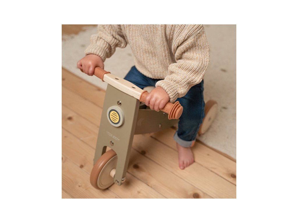Detské odrážadlo v krásnom drevenom prevedení s tromi kolesami pre väčšiu stabilitu. Kolesá majú gumovú hranu pre hladkú jazdu, gumené rukoväte riadidiel poskytujú príjemné držanie a ovládanie odrážadla. Robustné sedadlo umožňuje pohodlné a stabilné sedenie.