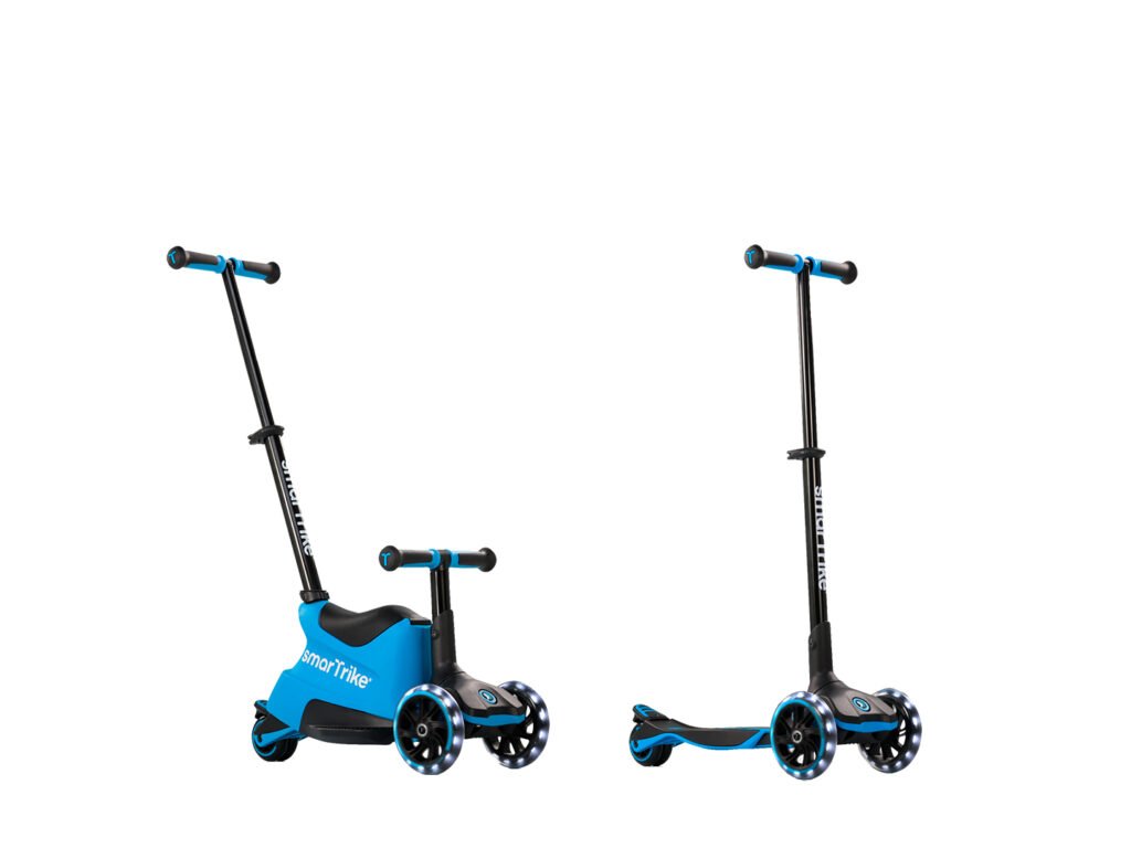 Xtend Ride-On kombinuje vlastnosti predĺžiteľnej kolobežky a trojkolky.