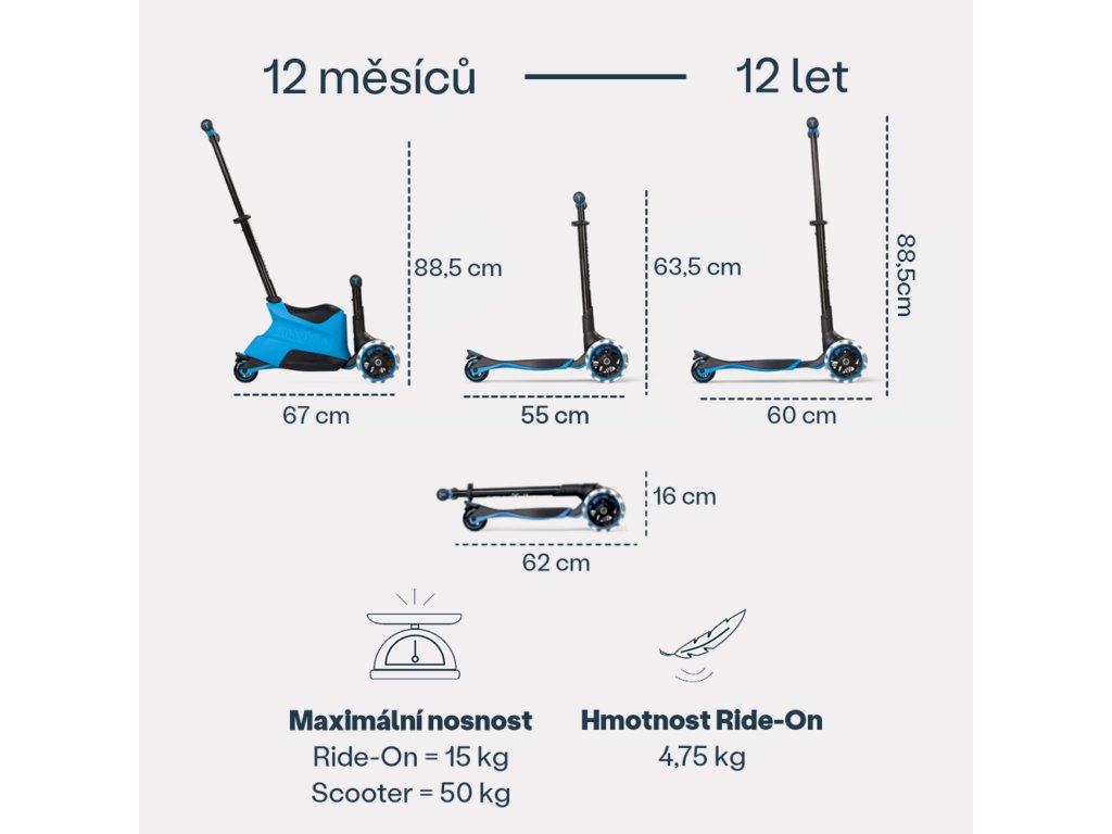 unikátna multifunkčná kolobežka určená deťom od 12 mesiacov do 12 rokov