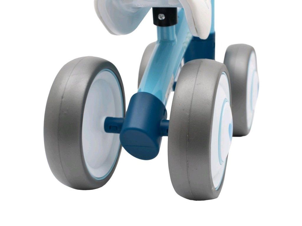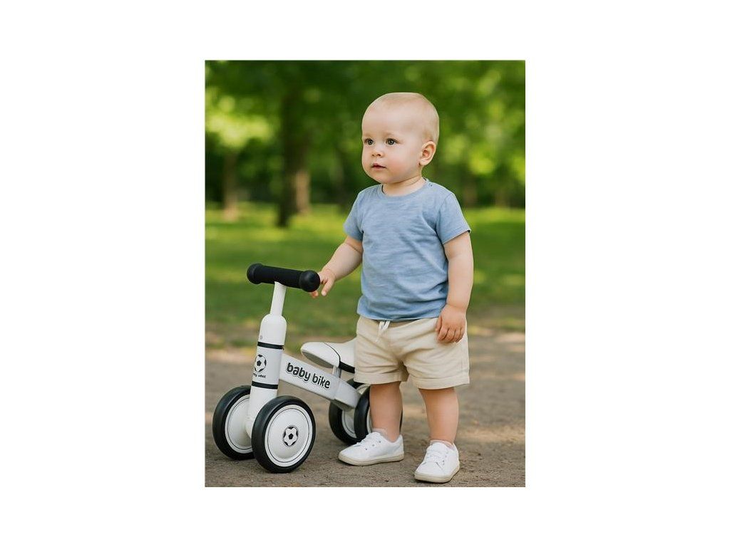 Detské odrážadlo Baby Bike je určené tým najmenším pretekárom a závodníkom. Vďaka špeciálne navrhnutému rámu a veľmi nízkej hmotnosti je Baby Bike vhodný pre deti od 1 roka. Je ideálny v čase, keď sa dieťa učí držať rovnováhu a koordináciu pohybov celého tela. Je tou najlepšou alternatívou pre bicykel s bočnými kolieskami, pretože neskoršia jazda na klasickom bicykli bude oveľa jednoduchšia. Vďaka použitiu dvojitých kolies a pevného oceľového rámu je stabilné a bezpečné. Penové, ergonomicky tvarované sedadlo je ozdobené pekným obrázkom a je príjemne mäkučké. Baby Bike má blokádu riadidiel, takže sa nemusíte obávať nekontrolovaného pádu, keď sa váš malý športovec začne učiť manévrovať. Dvojité penová kolieska skvele absorbujú nerovnosti a poskytujú perfektnú priľnavosť na všetkých povrchoch.