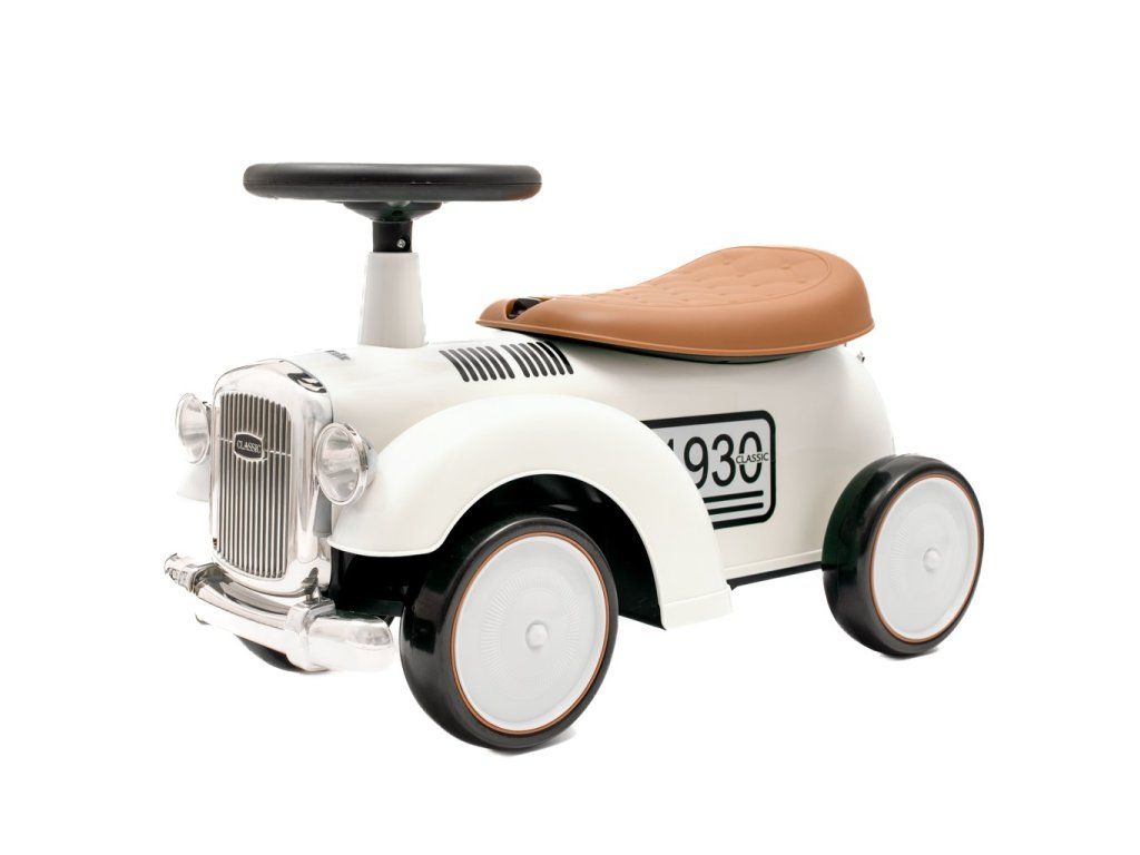 Detské odrážadlo Retro pozýva malých cestovateľov na retro jazdu. Upúta svojimi oku lahodiacimi farbami. Je bohato vybavené. Toto autíčko má volant so zvukom a tvarované sedadlo. Poskytne vášmu dieťaťu skvelú zábavu pri riadení a rozvíja jeho zmysel pre rovnováhu a všeobecné motorické zručnosti. Autíčko má ľahkú plastovú konštrukciu a ergonomické tvary. Otočný volant autíčka Retro umožňuje náročné manévre doma aj na prechádzkach. Kolesá tohto krásneho vozidla sú vyrobené z mäkkej peny EVA. Retro autíčko môže vaše dieťa používať ako svoje prvé vozidlo so skutočným volantom a klaksónom, ďalej ako kočík s otvoreným úložným priestorom na hračky (malý kufor), imitáciou palivovej nádrže na zadnej časti vozidla a prednou časťou auta - mriežkou v striebornej farbe. Vozítko Royce je určené všetkým deťom, ktoré vedia samostatne sedieť. Vozítko je možné používať v interiéri aj exteriéri a spríjemní vášmu dieťaťu čas strávený na prechádzke.