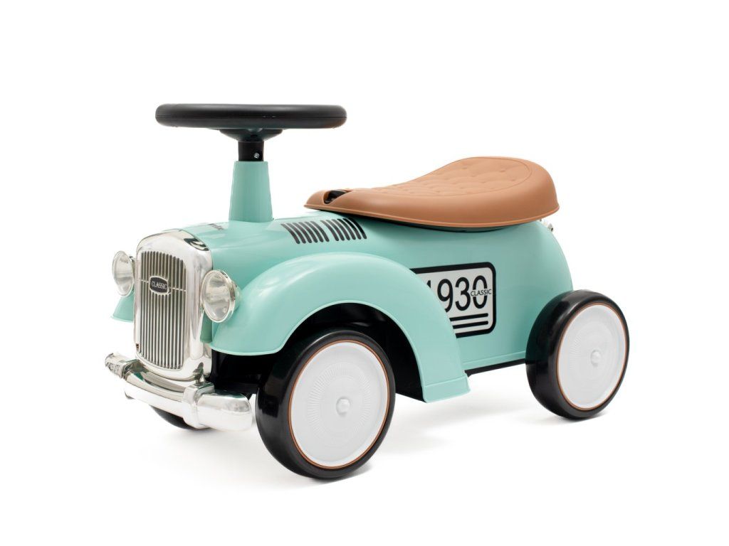 Detské odrážadlo Retro pozýva malých cestovateľov na retro jazdu. Upúta svojimi oku lahodiacimi farbami. Je bohato vybavené. Toto autíčko má volant so zvukom a tvarované sedadlo. Poskytne vášmu dieťaťu skvelú zábavu pri riadení a rozvíja jeho zmysel pre rovnováhu a všeobecné motorické zručnosti. Autíčko má ľahkú plastovú konštrukciu a ergonomické tvary. Otočný volant autíčka Retro umožňuje náročné manévre doma aj na prechádzkach. Kolesá tohto krásneho vozidla sú vyrobené z mäkkej peny EVA. Retro autíčko môže vaše dieťa používať ako svoje prvé vozidlo so skutočným volantom a klaksónom, ďalej ako kočík s otvoreným úložným priestorom na hračky (malý kufor), imitáciou palivovej nádrže na zadnej časti vozidla a prednou časťou auta - mriežkou v striebornej farbe. Vozítko Royce je určené všetkým deťom, ktoré vedia samostatne sedieť. Vozítko je možné používať v interiéri aj exteriéri a spríjemní vášmu dieťaťu čas strávený na prechádzke.