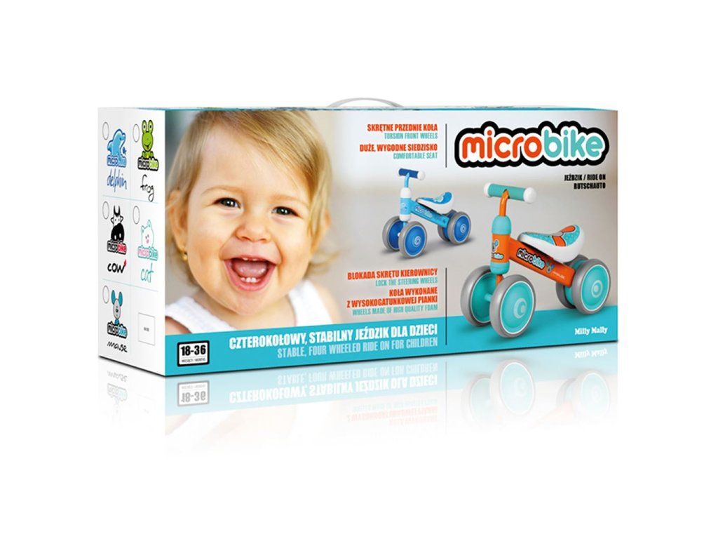 Detské odrážadlo Milly Mally Micro. Odrážadlo je extrémne ľahké, veľmi stabilné, malých rozmerov vhodné na doma i von. Kolieska sú penové, nekĺzavé a tiež jazdia na rôznych povrchoch. Sedadlo je ozdobené krásnym obrázkom zvieratka. Ideálne pre malé detičky.