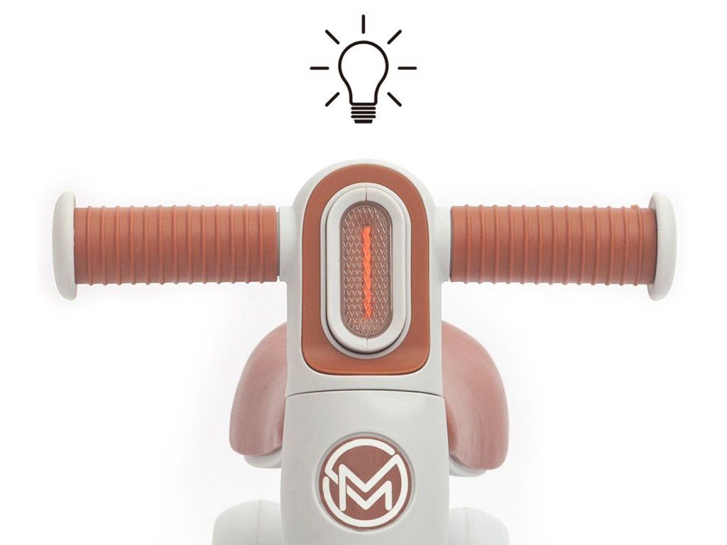 LED svetlo zabudované v riadidlách (2× AAA/LR03 – nie sú súčasťou balenia) dodáva jazde hravý efekt a motivuje dieťa k pohybu. Odrážadlo je vhodné na použitie doma aj vonku na rovnom povrchu.