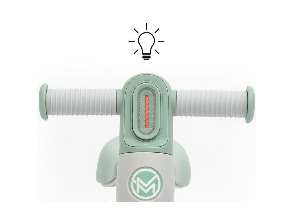 LED svetlo zabudované v riadidlách (2× AAA/LR03 – nie sú súčasťou balenia) dodáva jazde hravý efekt a motivuje dieťa k pohybu. Odrážadlo je vhodné na použitie doma aj vonku na rovnom povrchu.