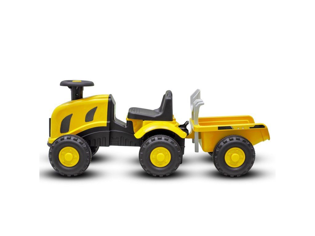 Detské odrážadlo traktor s vlečkou a náradim Baby Mix Benny žltý - 58357