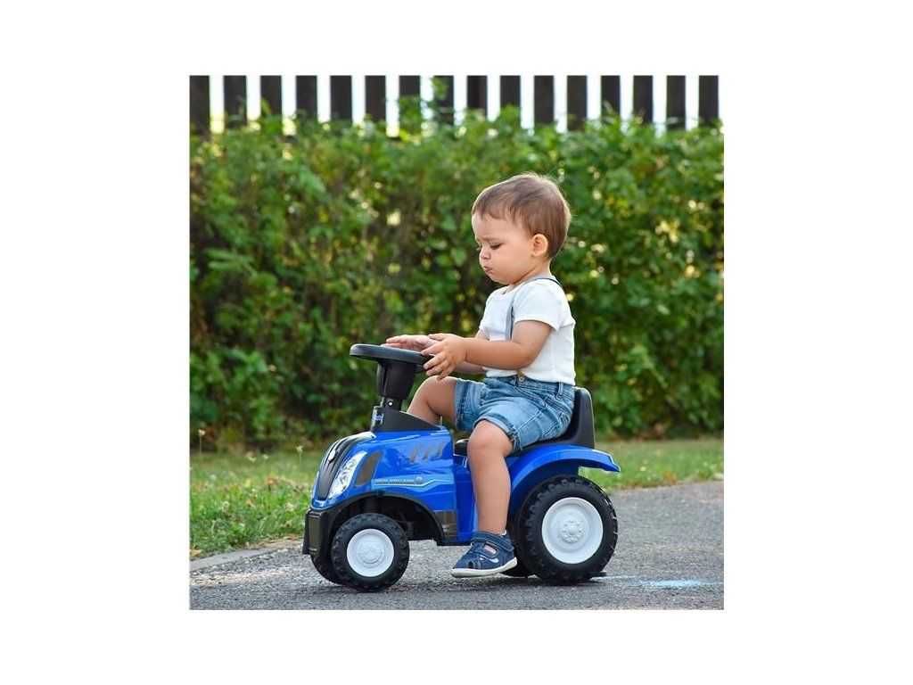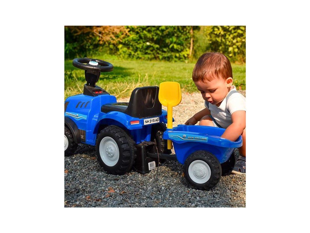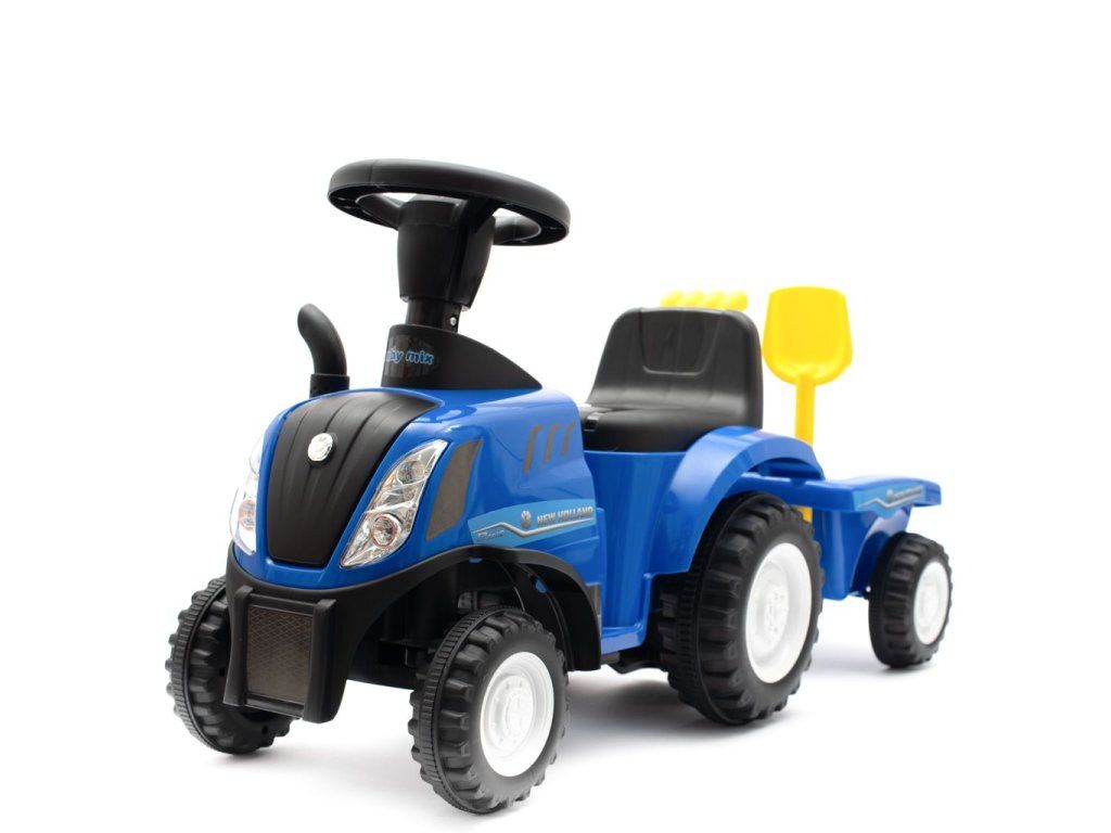 Detské odrážadlo traktor s vlečkou a náradim Baby Mix New Holland modrý - 45784