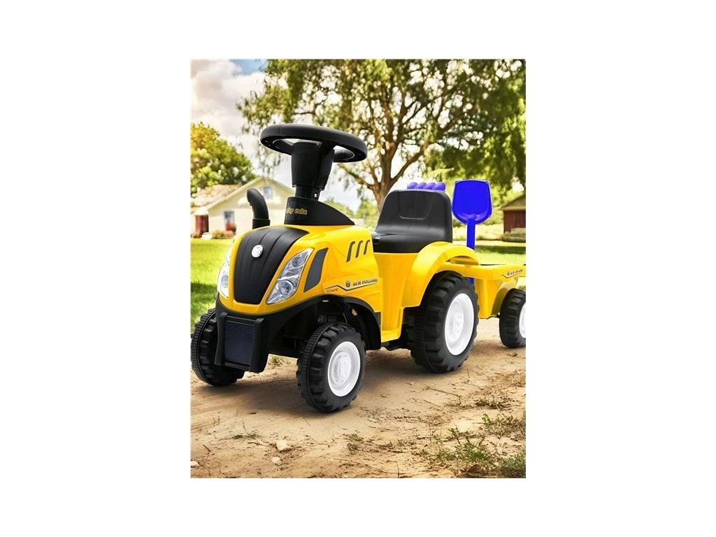 Detské odrážadlo traktor s vlečkou a náradim Baby Mix New Holland žltý - 45785