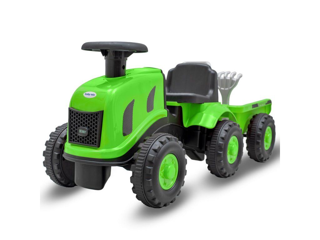 Detské odrážadlo traktor s vlečkou a náradim Baby Mix Benny zelený - 58358