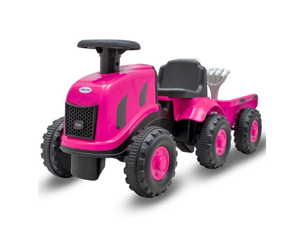 Dětské odrážedlo traktor s vlečkou a náradim Baby Mix Benny ružový - 58362