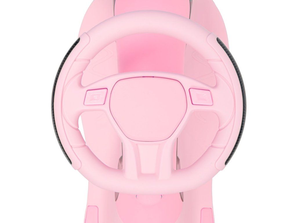 Ergonomicky tvarované sedadlo a protišmykové opierky na nohy zabezpečujú pohodlie a bezpečnosť pri hre. Šírka volantu je navrhnutá tak, aby dokonale sedela do detských rúk a umožňovala ľahké ovládanie.
