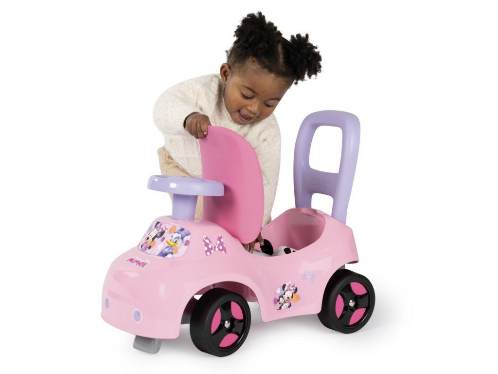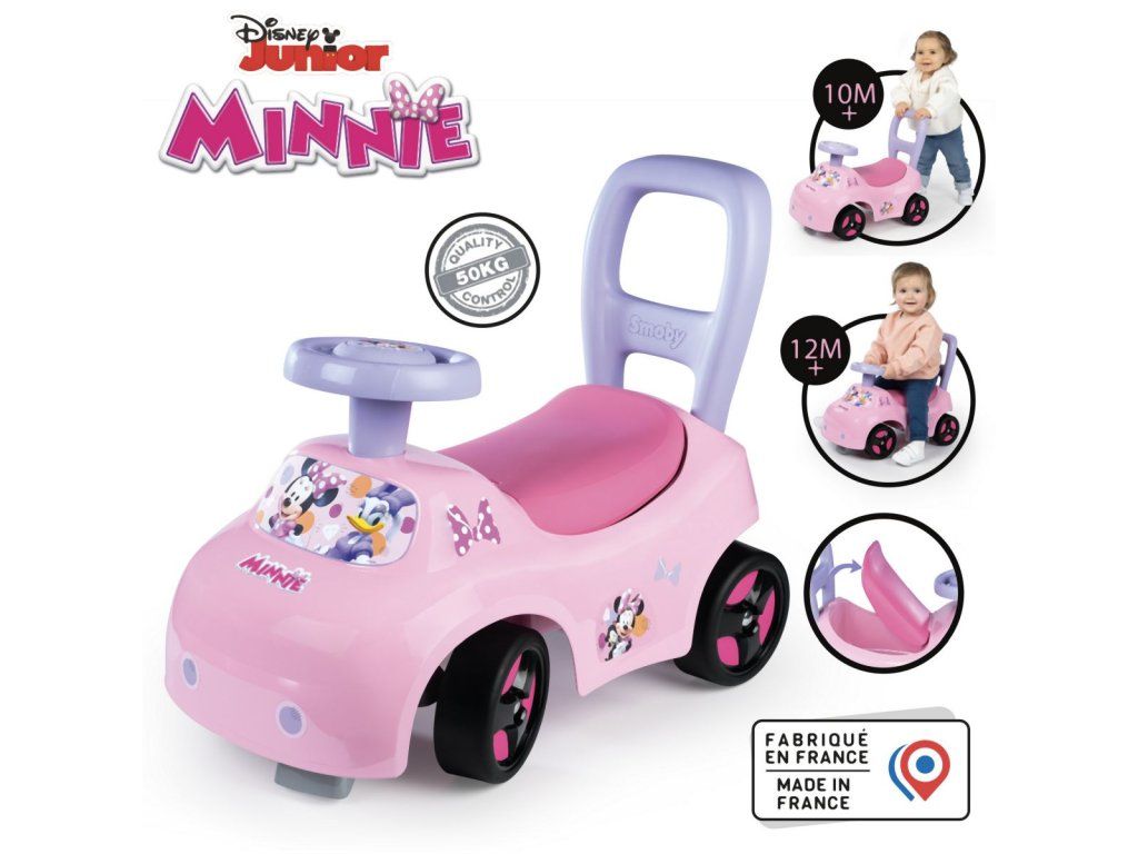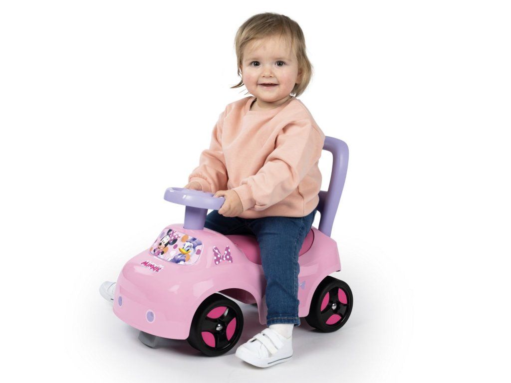 Stabilné odrážadlo v tvare auta s myškou Minnie pre dievčatká. 2 v1 slúži ako chodítko aj odrážadlo. Nechýba volant, opierka chrbta, pod výklopným sedadlom schránka pre nevyhnutné veci malého cestovateľa. Ochrana proti preklopeniu vpred a vzad. Rozmery: 54 x 40 x 27 cm. Hmotnosť: 1,485 kg.Dodatočné parametre