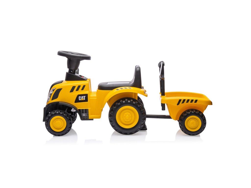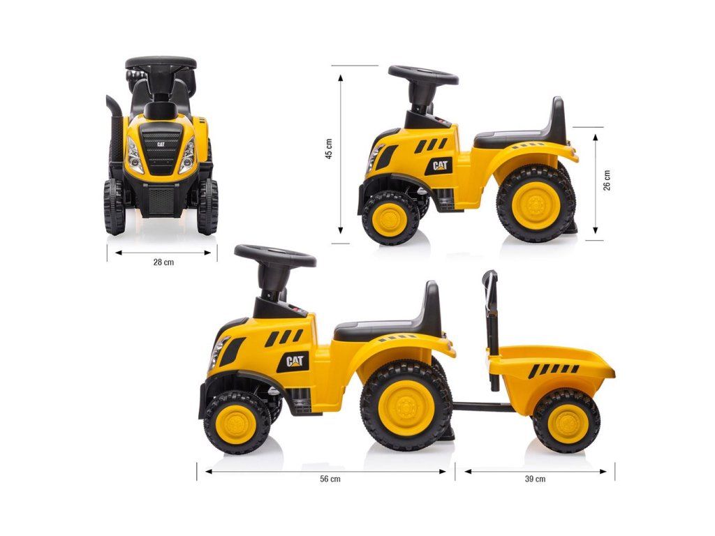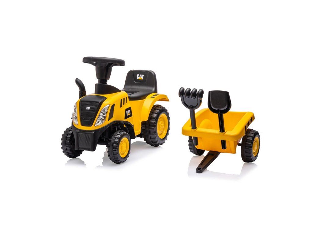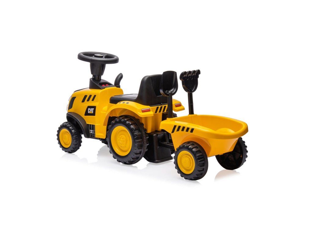 Multifunkčnosť jazdca zabezpečí, že sa vaše dieťa rýchlo neunaví a prostredníctvom hry si bude rozvíjať manuálnu zručnosť a motoriku. Súčasťou traktora je príves s hrabľami a lopatou. Príves má bezpečnostný zámok, ktorý zabraňuje jeho odpojeniu. Vďaka doplnkovej výbave nášho traktora CAT je malý traktorista pripravený na prácu na farme, vďaka 2 praktickým nástrojom môže ľahko naložiť poklady na prepravu na príves a vyraziť na cestu.
