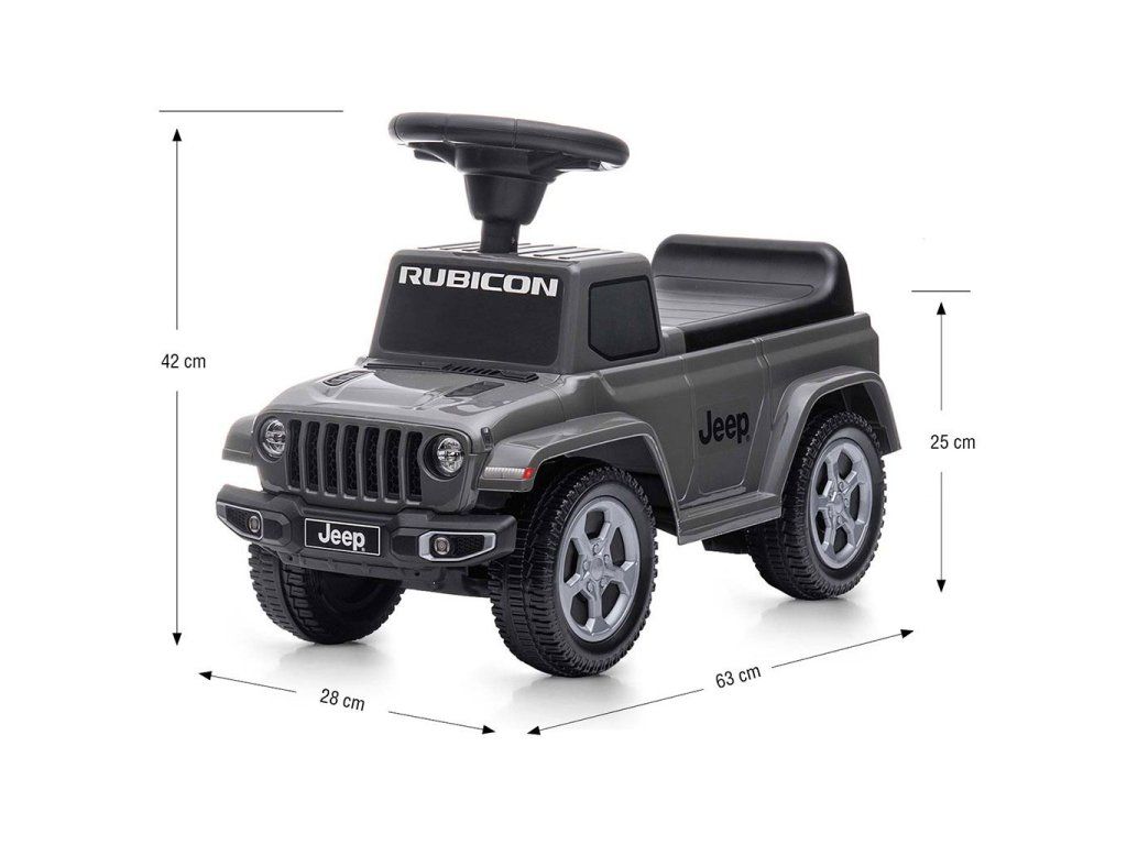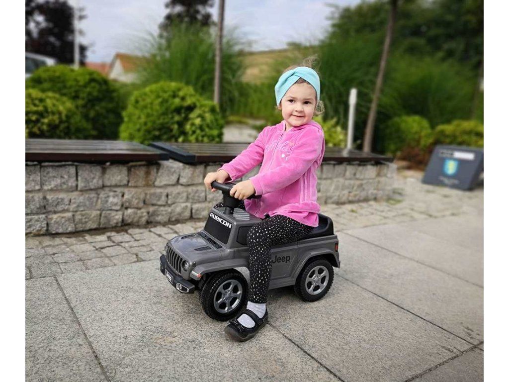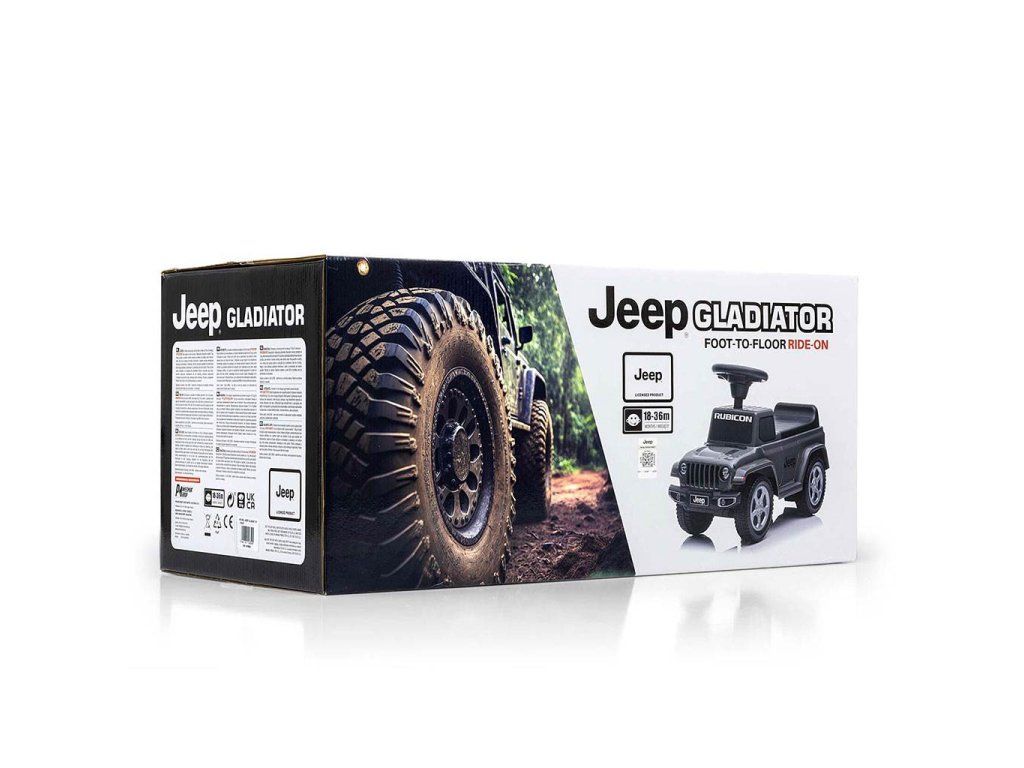 Licencovaný JEEP RUBICON GLADIATOR je odrážadlo, pri ktorého výrobe bola venovaná pozornosť aj tým najmenším detailom a kvalite použitých materiálov. Každého malého fanúšika áut poteší volant s realistickými zvukmi klaksónu a štartu motora. Vďaka použitiu podvozku s blokádou proti prevráteniu a kovovým osám poskytuje odrážadlo dieťaťu bezpečnú zábavu. Auto má ľahkú plastovú konštrukciu a ergonomické tvary zaisťujúce pohodlnú jazdu. Autíčko je jednak veľkou radosťou, jednak rozvíja zmysel pre rovnováhu a všeobecnú motoriku dieťaťa. Zábava prostredníctvom pohybových aktivít je skvelý spôsob, ako podporiť správny vývoj našich detí. Má volant a klaksón a tiež ukrýva pod sedadlom veľkú priehradku, kam si dieťa môže uložiť svoje hračky. Veľmi ľahko sa montuje a rozloží.