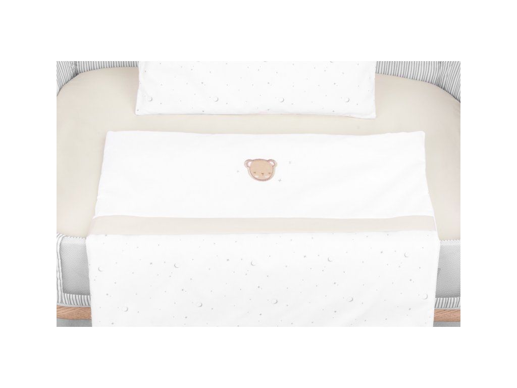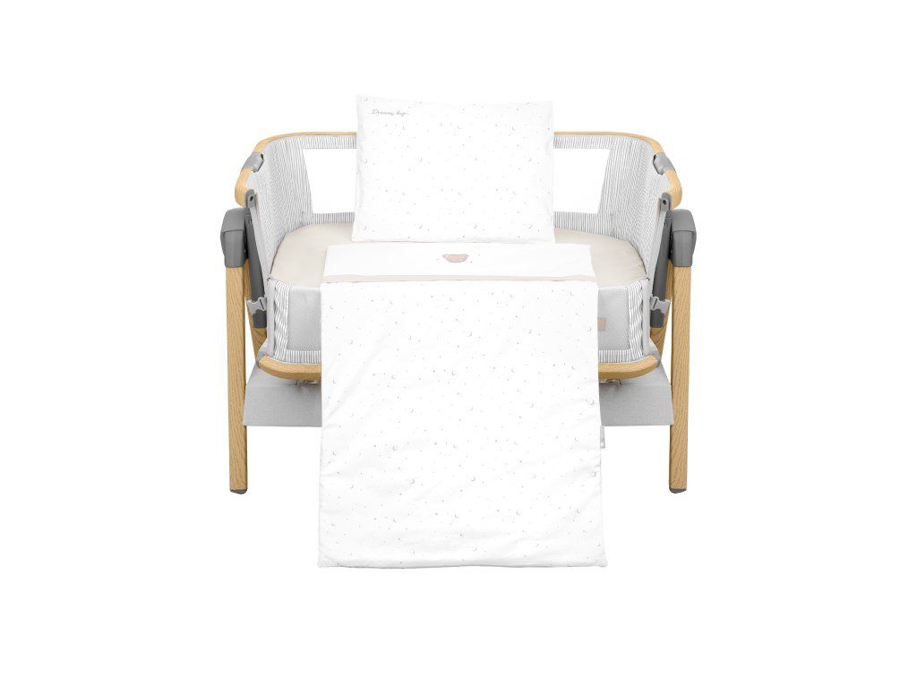 Kompletná posteľná sada do malej postieľky alebo kolísky obsahuje vankúšik, perinku, obliečky na vankúšik a perinku a naťahovacie prestieradlo. Obliečky sú vyrobené z jemnej, prémiovej 100% bavlny s Oeko-Tex® certifikáciou.