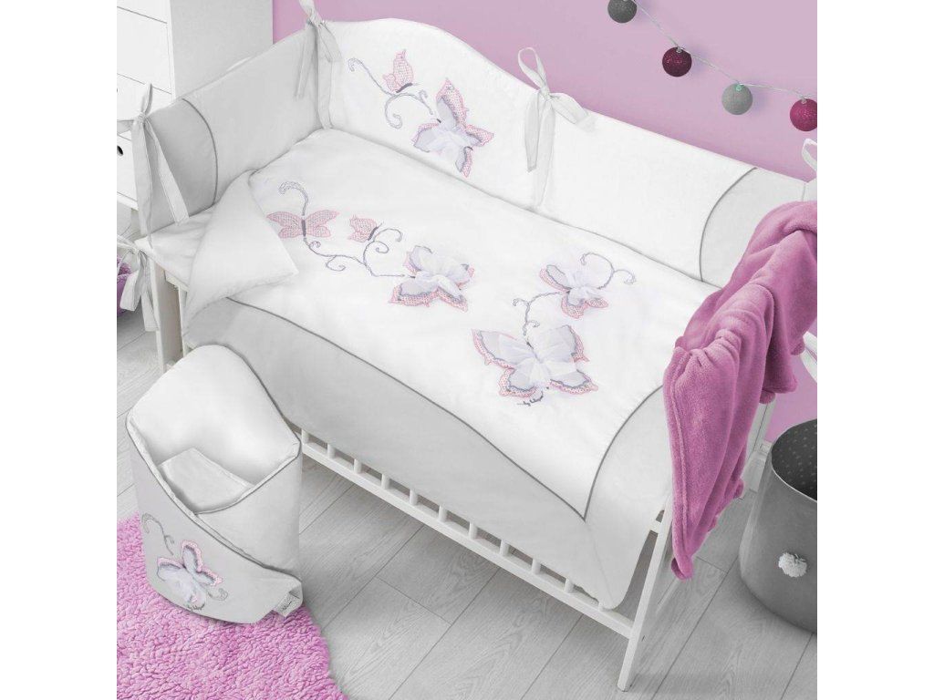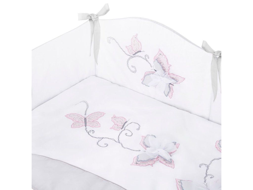 Krásna detská bavlnená 6-dielna súprava do postieľky Belisima Butterfly pre bábätká. Je vyrobená z mäkkého, príjemného materiálu. Súprava obsahuje obliečky na vankúšik cca 40x60 cm, obliečky na paplón cca 100x135 cm, mantinel cca 180 cm, vankůš a paplón, baldachýn. Materiál 100% bavlna.Tieto výrobky sú bezpečné, pretože: