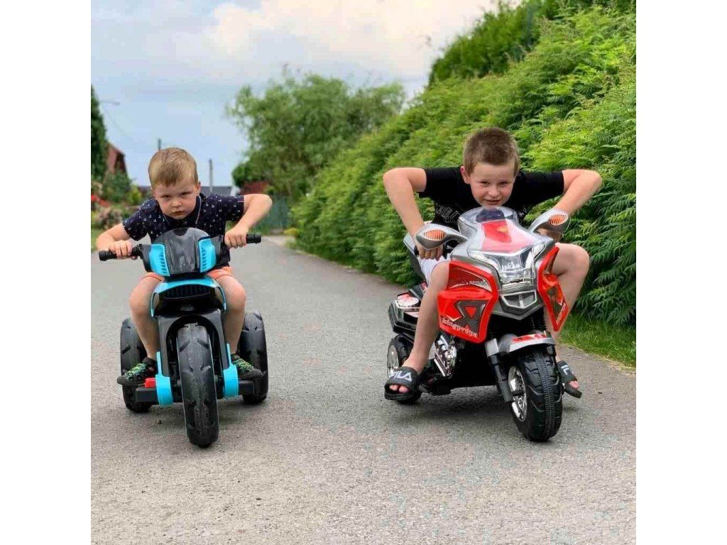 Motorka sa ovláda zošliapnutí pedálu na stúpadlo a po jeho uvoľnení, motocykel zabrzdí. Jazdu vpred i vzad ovládate prepínaním tlačidla pre zmenu smeru jazdy. O náhon na zadné kolesá sa stará dvojica silných 6V / 24W motorov poháňaná batériou 6V / 7Ah.