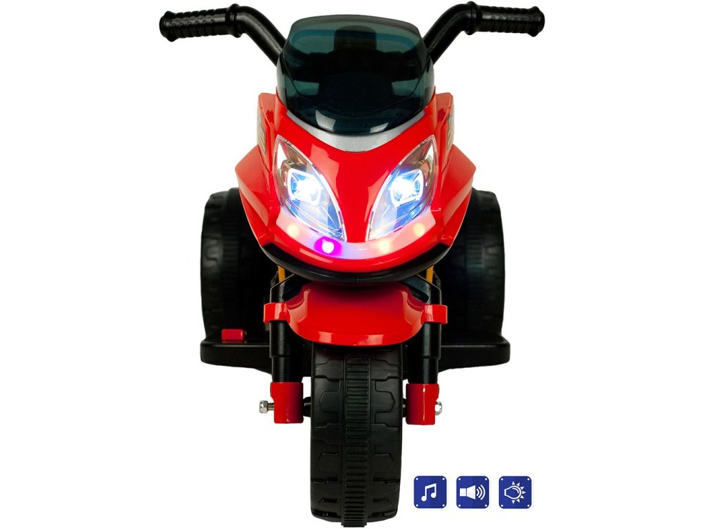 Detská motorka BAYO KICK. Motorka skvele jazdí a má jeden motor. Jazdí zošliapnutím pedálu na stúpadlu. Smer jazdy určíte tlačidlom vpred (Forward) / vzad (Backward), ktoré je na riadidlách. Motorka má veľa funkcií ako je tlačidlo pre zapnutie vozidlá a tlačidlo s melódiami. Kvalitné kolesá, pevná a kvalitná konštrukcia, to všetko je zárukou bezpečia pre Vaše deti. Batéria sa jednoducho nabíja nabíjačkou. S motorkou si užijete veľa zábavy a zábavy. Farba kolies sa líši podľa aktuálnej ponuky.Charakteristika: