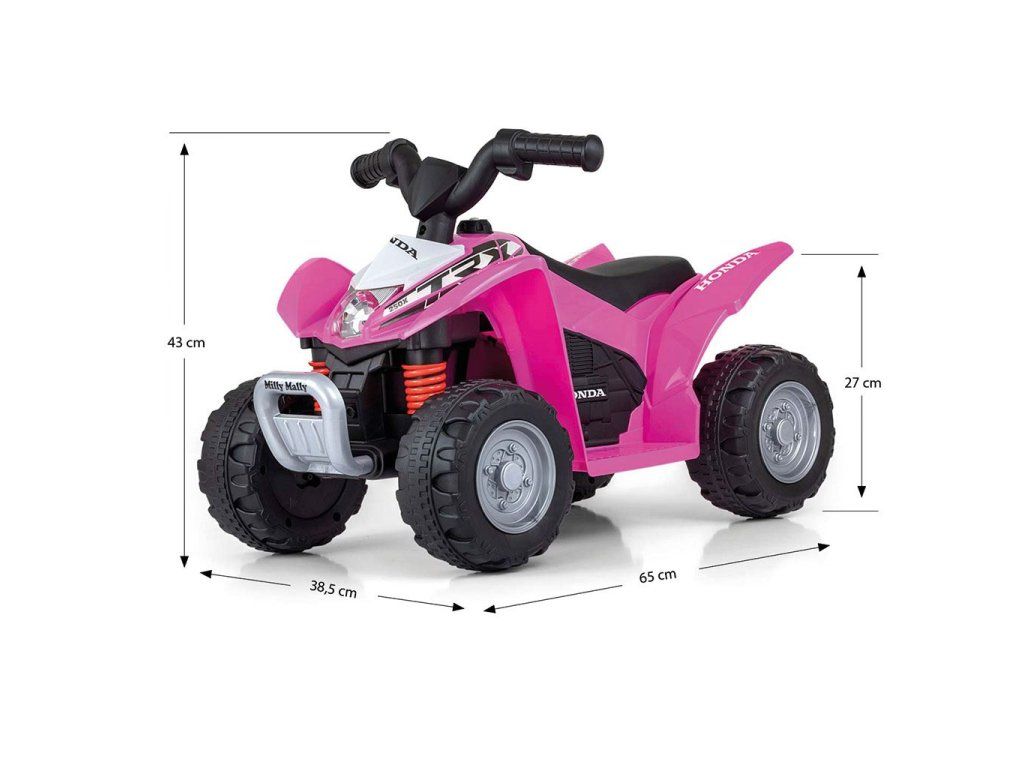 Detská elektrická štvorkolka Honda ATV je perfektný darček pre deti od 24 mesiacov, ktoré milujú pohyb a dobrodružstvo. Kombinuje bezpečnosť, kvalitu licencovanej značky Honda a realistický dizajn, ktorý nadchne každého malého vodiča.