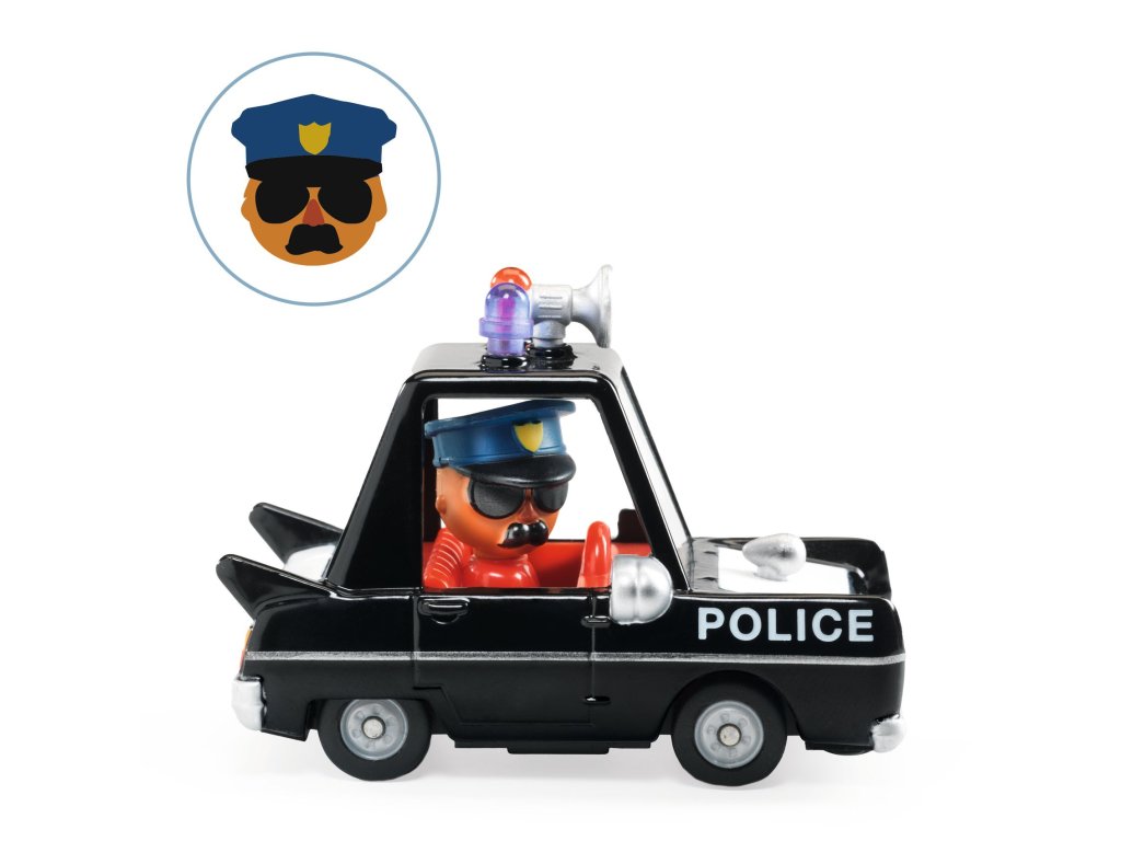 Crazy Motors Hurry PoliceKovové policajné autíčko pre rýchle zásahy a naháňačkyHurry Police zo série Crazy Motors od značky Djeco je dynamické kovové policajné autíčko, ktoré je vždy pripravené vyraziť do akcie. Vďaka športovému dizajnu, výrazným farbám a hladko sa otáčajúcim kolieskam ponúka deťom rýchlu a akčnú hru. Autíčko má pevné kovové telo, detailné spracovanie a kompaktný tvar ideálny pre detské ruky. Je vhodné na samostatnú hru aj na kombinovanie s ďalšími vozidlami a doplnkami zo sveta Crazy Motors.Čo hra s autíčkom rozvíjafantáziu a tvorivé mysleniejemnú motorikukoordináciu ruka–okorozprávačské schopnostisamostatnú aj spoločnú hruPrečo si vybrať Crazy Motors – Hurry Police od Djecorýchly a výrazný policajný dizajnkvalitné kovové spracovaniehladký pohyb koliesoksúčasť zberateľskej série Crazy Motorsvhodné pre deti od cca 3–4 rokovObsah baleniakovové autíčko Crazy Motors – Hurry PoliceDodatočné parametre