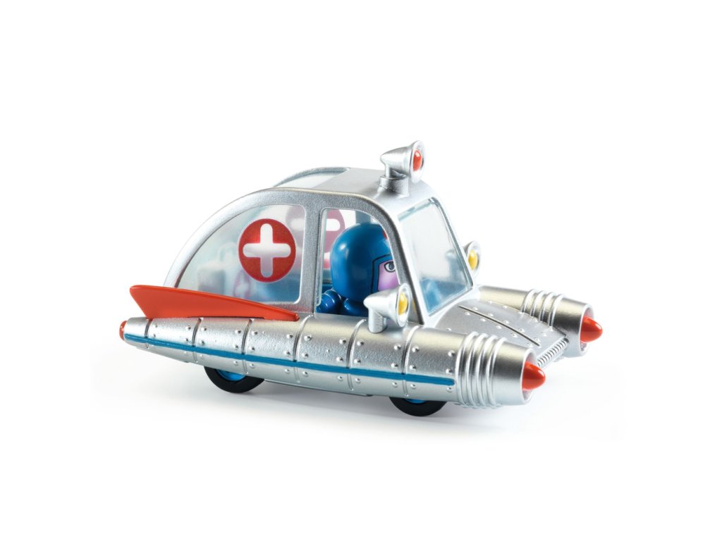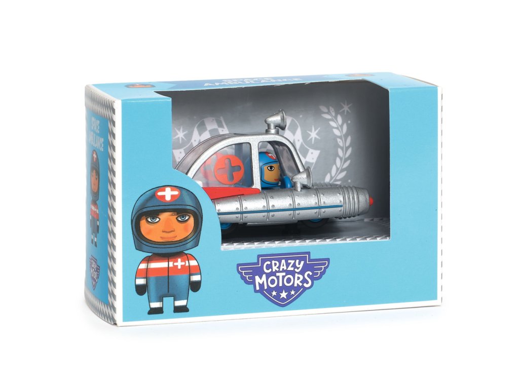 Crazy Motors Space AmbulanceOriginálne kovové autíčko z galaktickej záchrannej jednotkyVesmírna sanitka (Space Ambulance) zo série Crazy Motors od značky Djeco je štýlové kovové autíčko s futuristickým dizajnom, ktoré prenesie deti do sveta vesmírnych záchranných misií. Autíčko má kovové telo, voľne sa otáčajúce kolieska a výrazné farebné detaily typické pre kolekciu Crazy Motors. Vďaka kompaktným rozmerom je ideálne na samostatnú hru, zbieranie aj kombinovanie s ďalšími vozidlami a hernými doplnkami z tejto série.Prečo si vybrať Crazy Motors – Space Ambulanceoriginálny vesmírny dizajnkvalitné kovové spracovaniehladký chod koliesoksúčasť zberateľskej série Crazy Motorsideálne pre deti od 3 rokovObsah baleniakovové autíčko Crazy Motors – Space AmbulanceDodatočné parametre